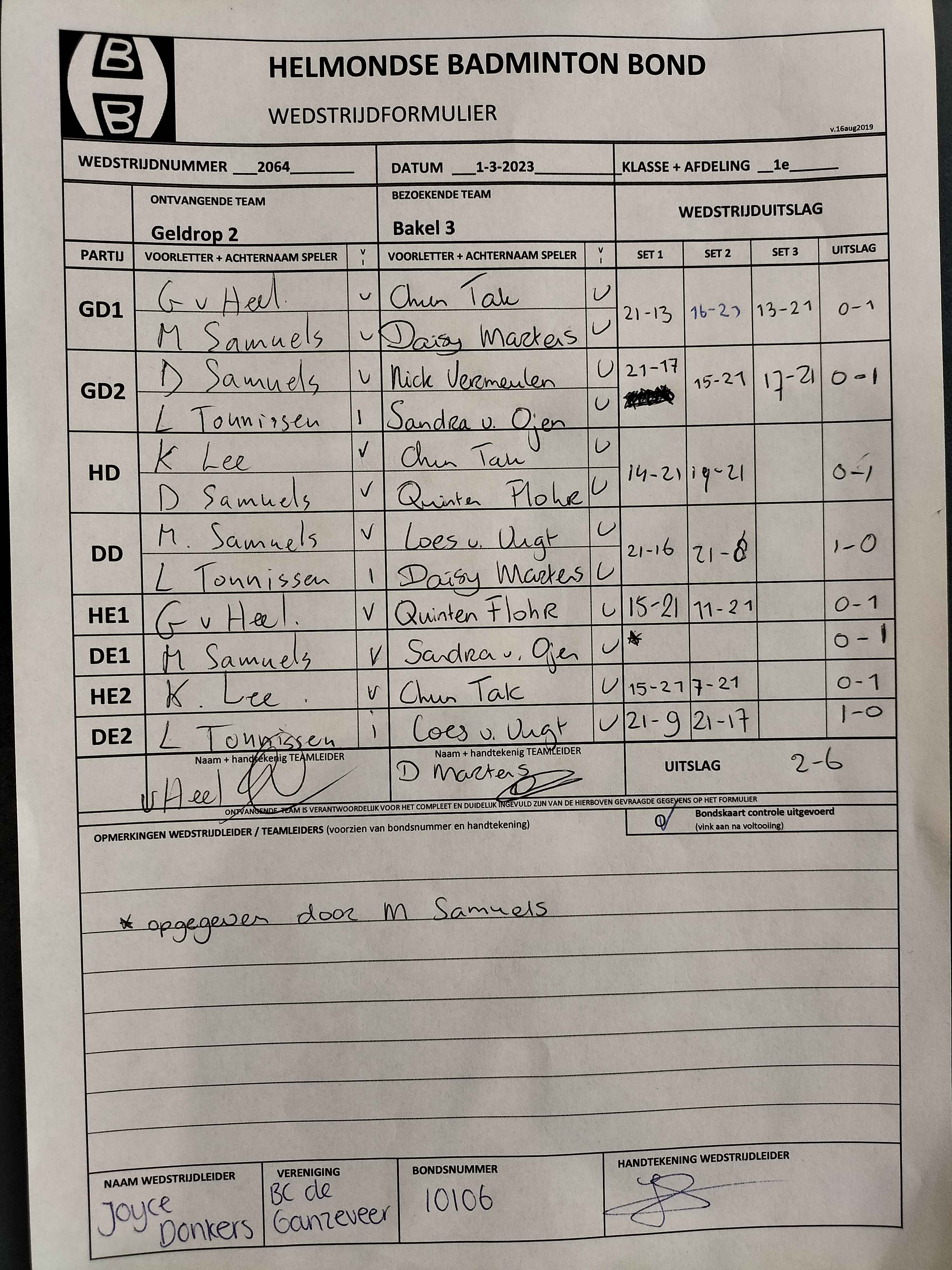 | 2064 | wo. 01-03-2023 | Geldrop 2 | - | Bakel 3 | 14 | 2 - 6 | |||