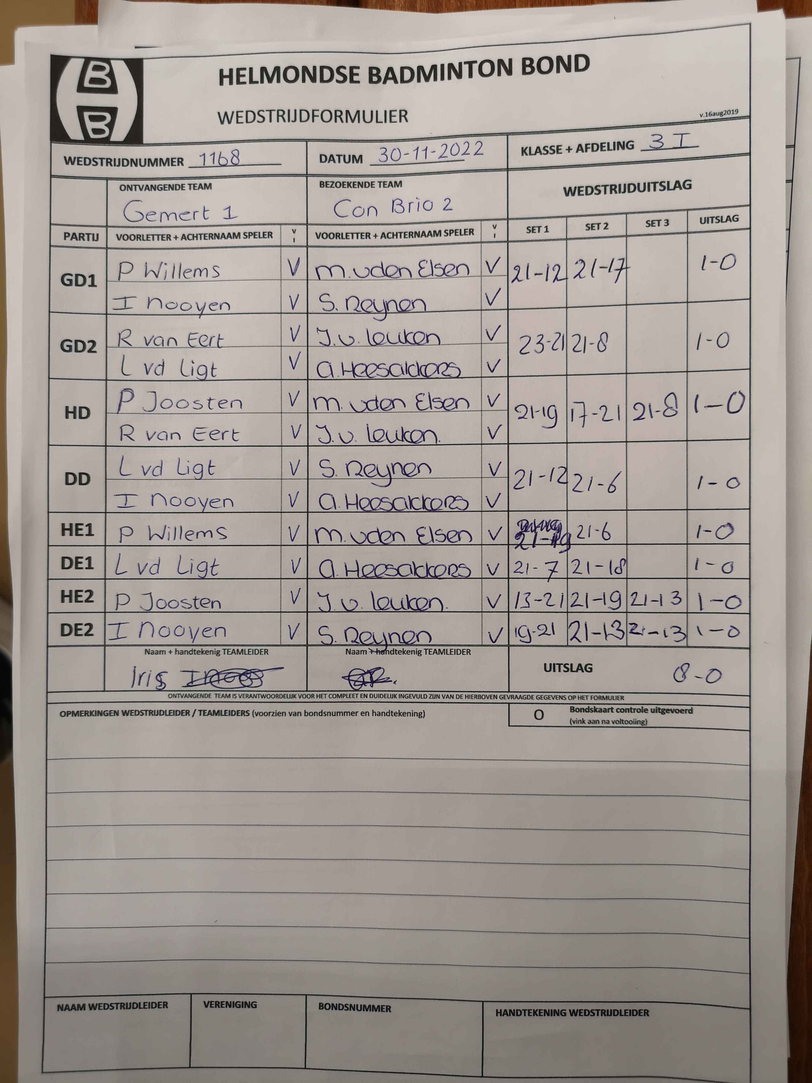 | 1168 | wo. 30-11-2022 | Gemert 1 | - | Con Brio 2 | 2 | 8 - 0 | |||