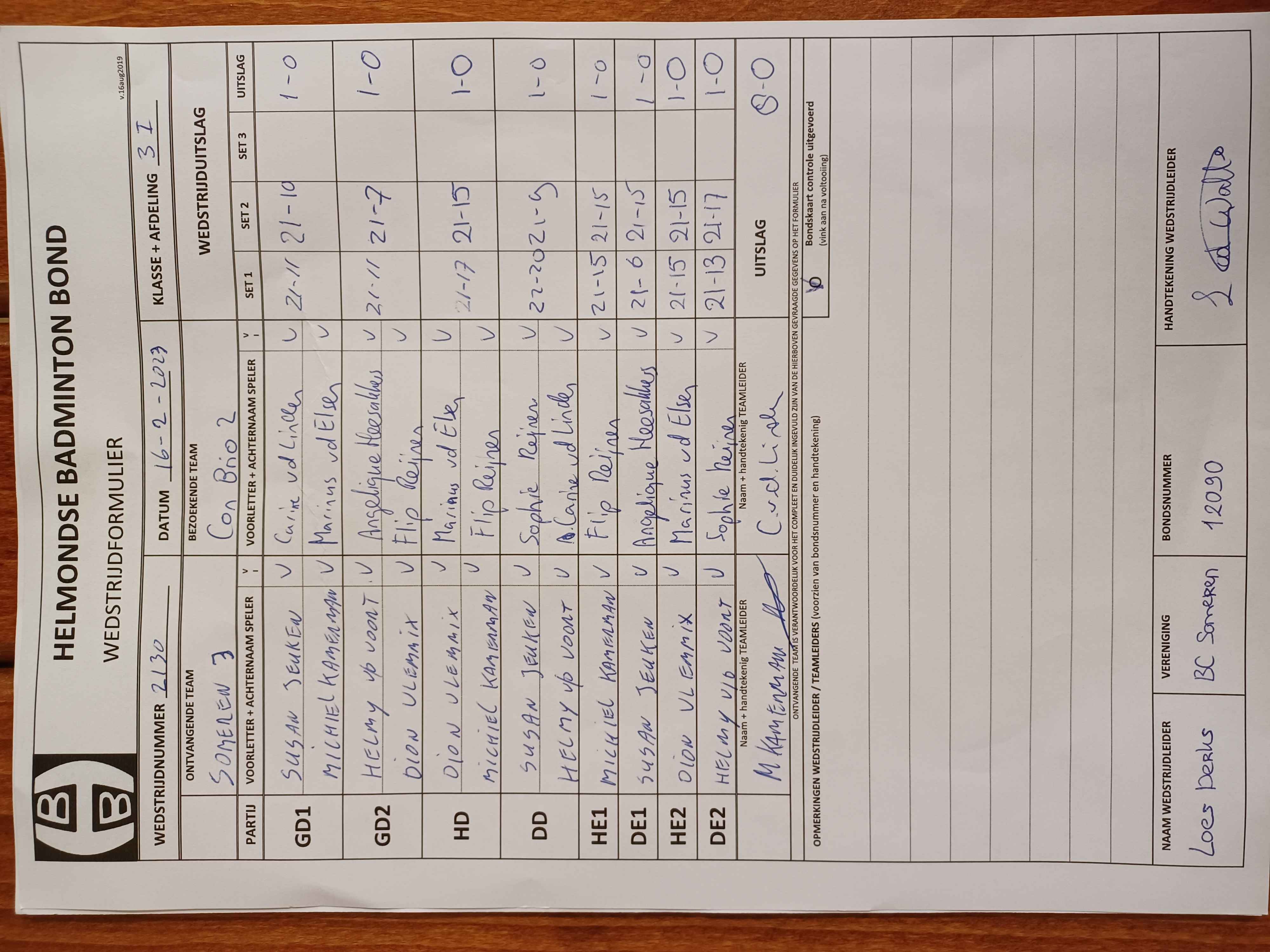 | 2130 | do. 16-02-2023 | Someren 3 | - | Con Brio 2 | 5 | 8 - 0 | |||