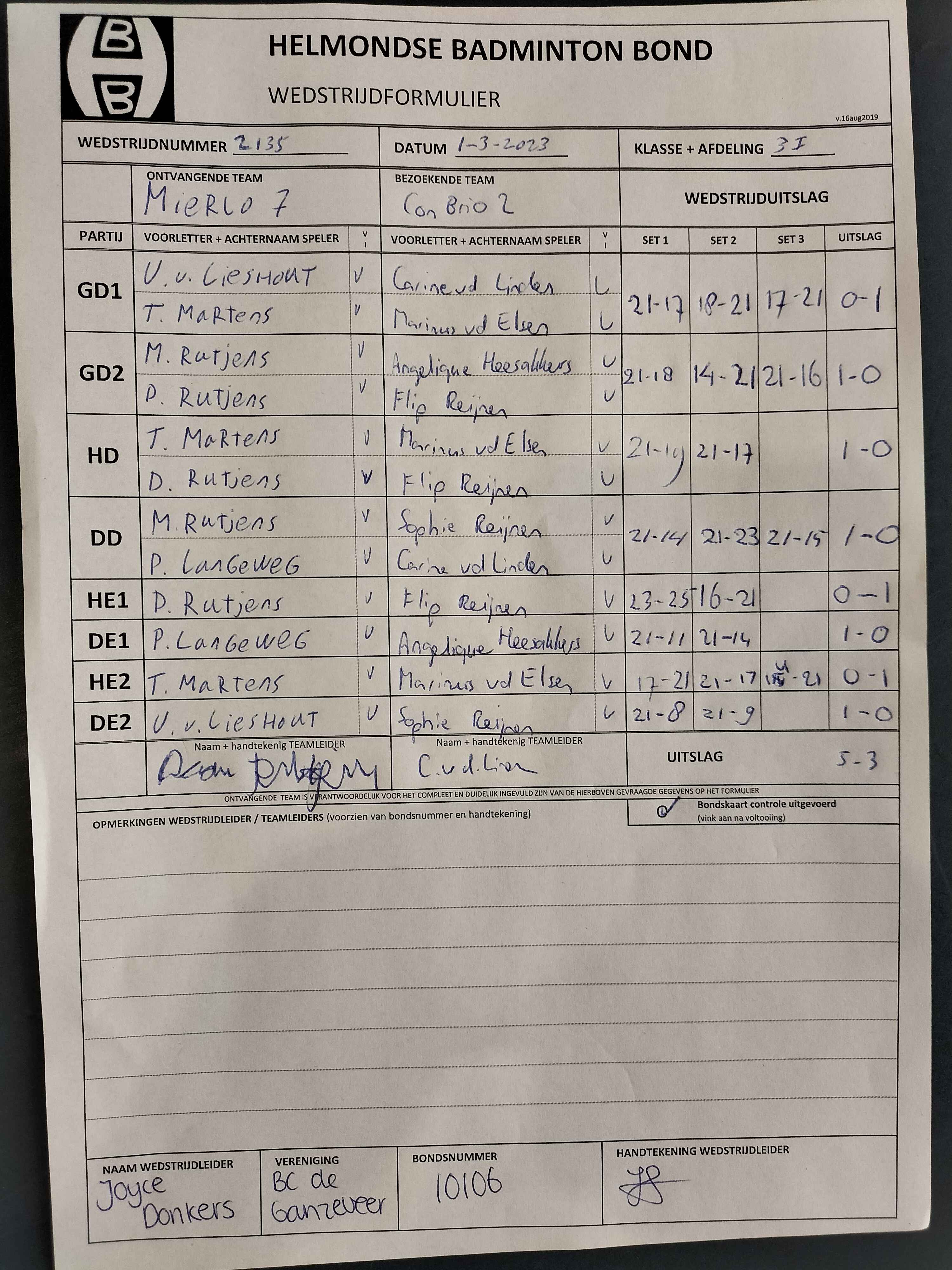 | 2135 | wo. 01-03-2023 | Mierlo 7 | - | Con Brio 2 | 2 | 5 - 3 | |||