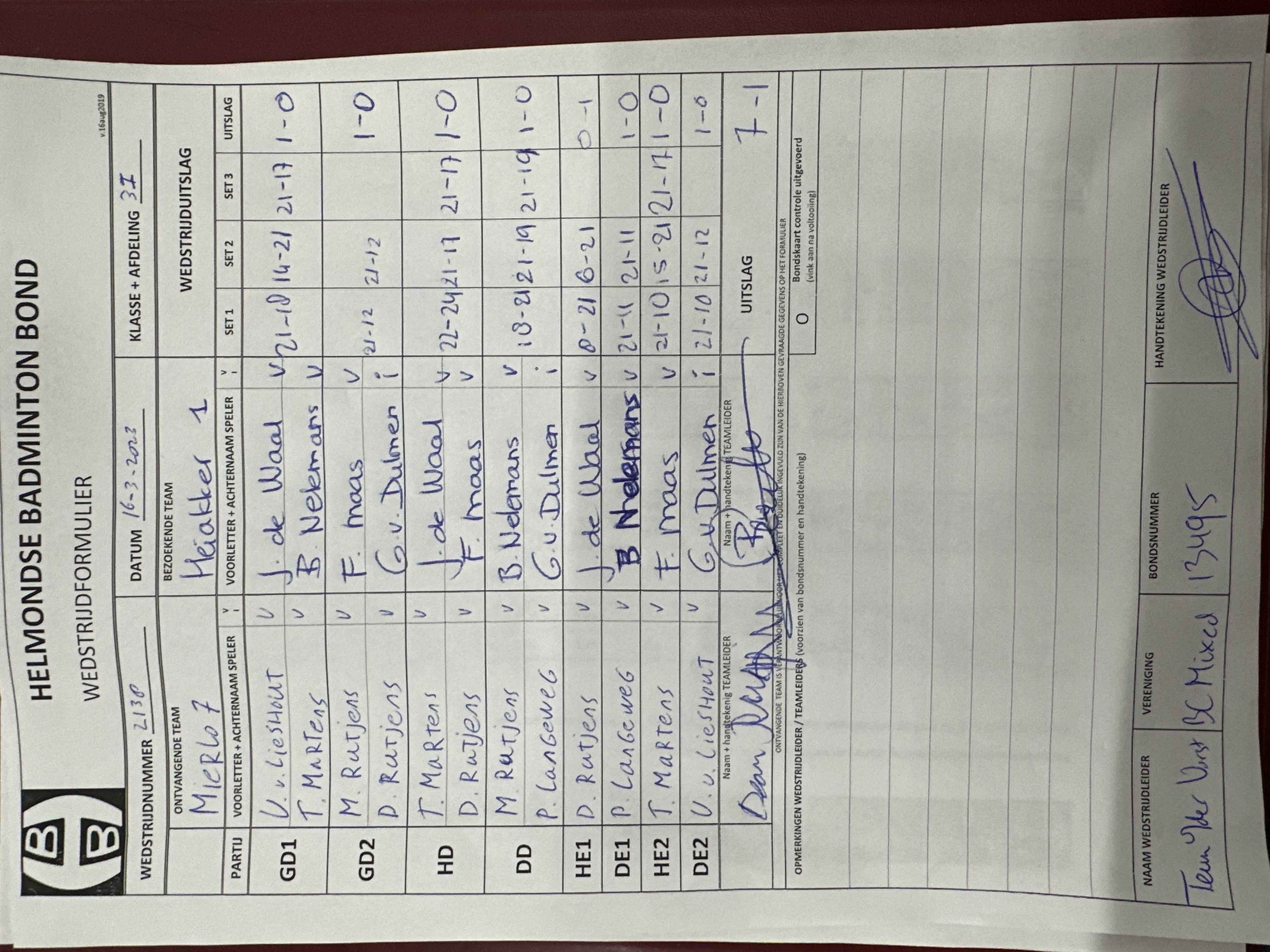 | 2138 | do. 16-03-2023 | Mierlo 7 | - | Heiakker 1 | 13 | 7 - 1 | |||