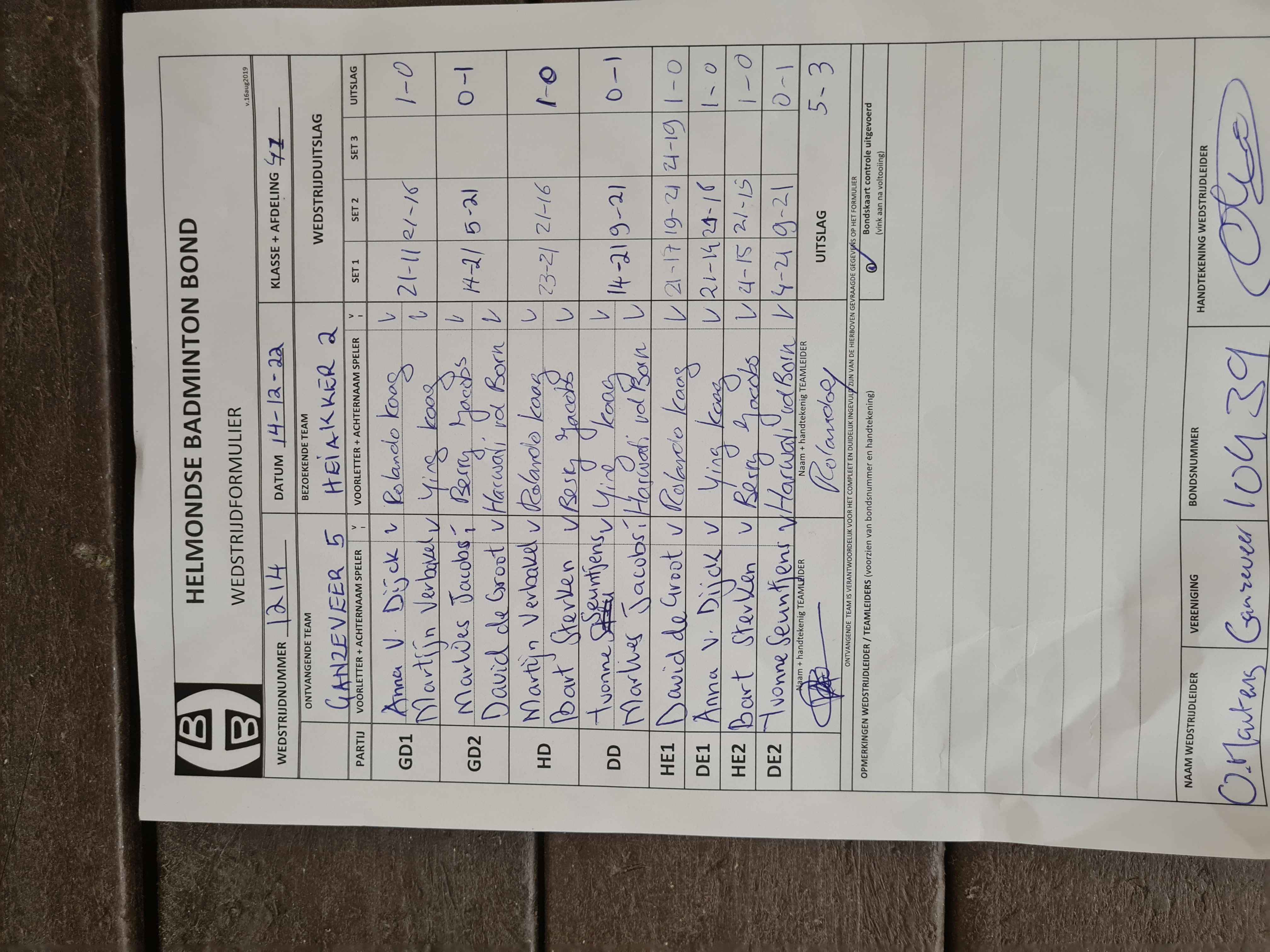 | 1214 | wo. 14-12-2022 | Ganzeveer 5 | - | Heiakker 2 | 5 | 5 - 3 | |||