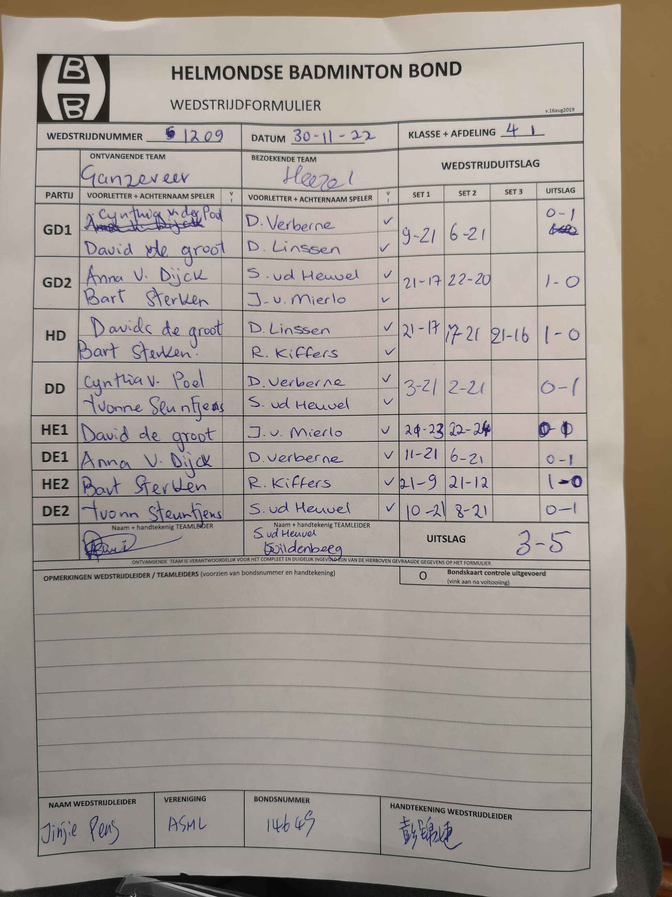 | 1209 | wo. 30-11-2022 | Ganzeveer 5 | - | Heeze 1 | 12 | 3 - 5 | |||