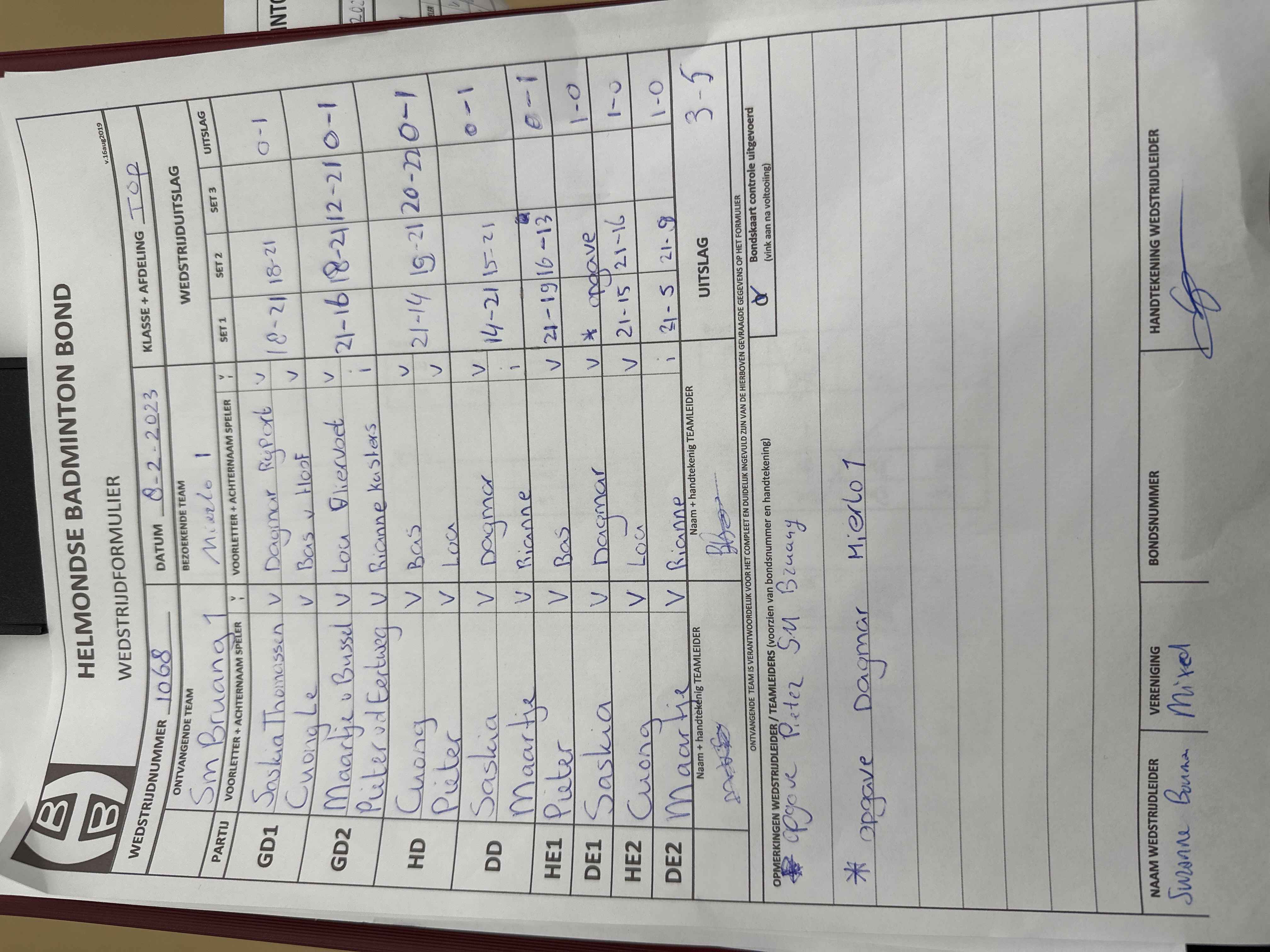 | 2179 | wo. 08-02-2023 | Smashing Bruang 3 | - | Heeze 1 | 12 | 2 - 6 | |||
