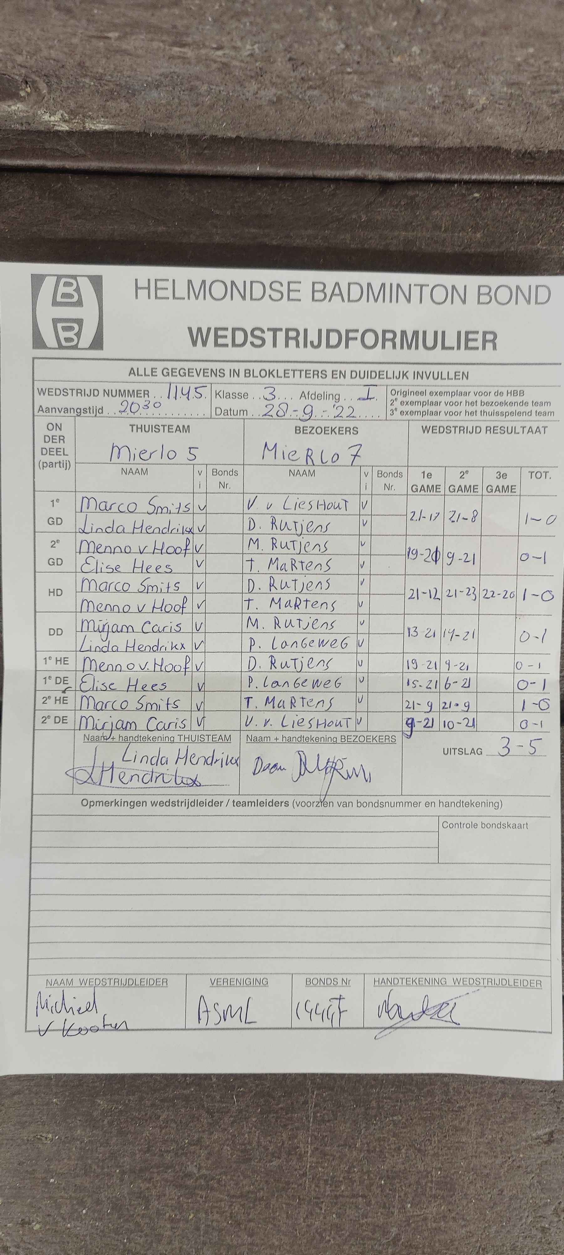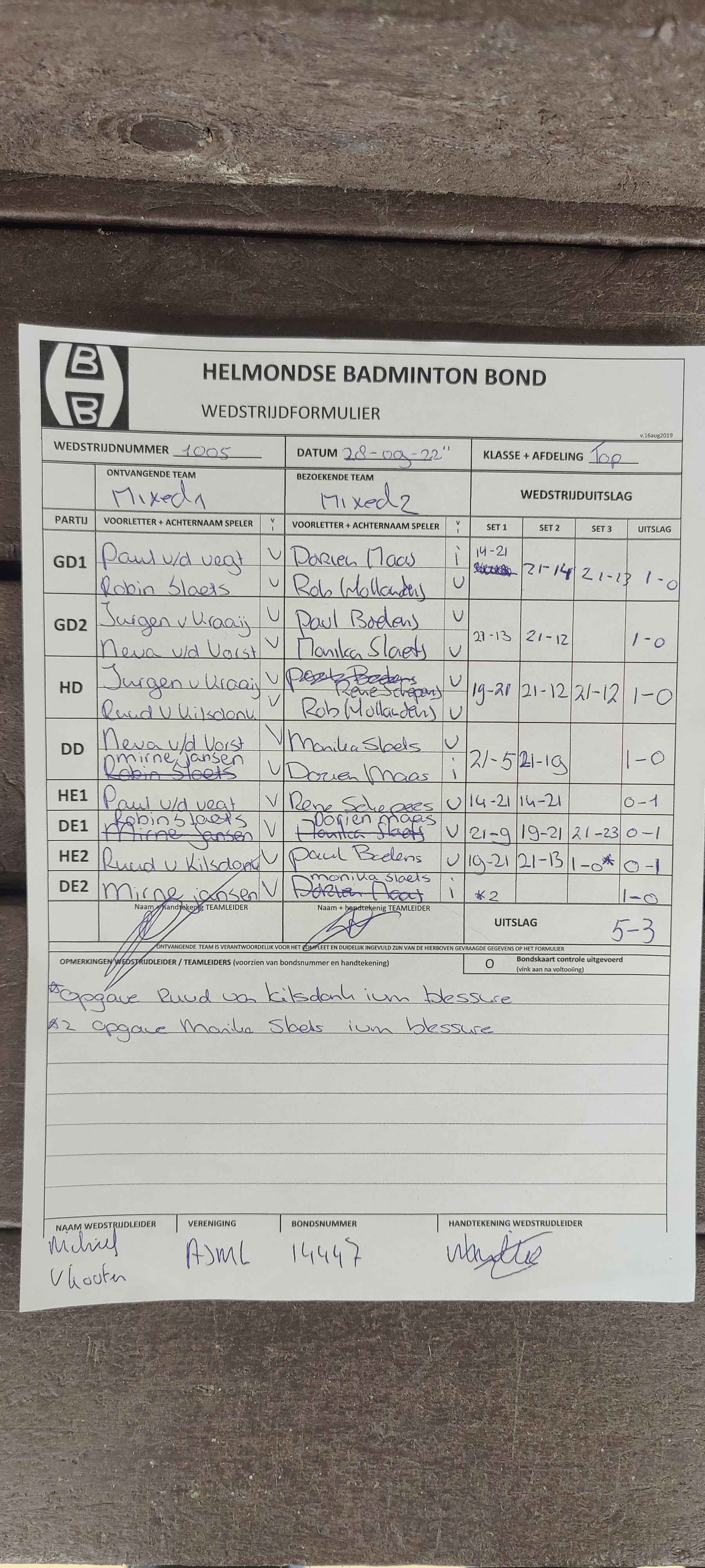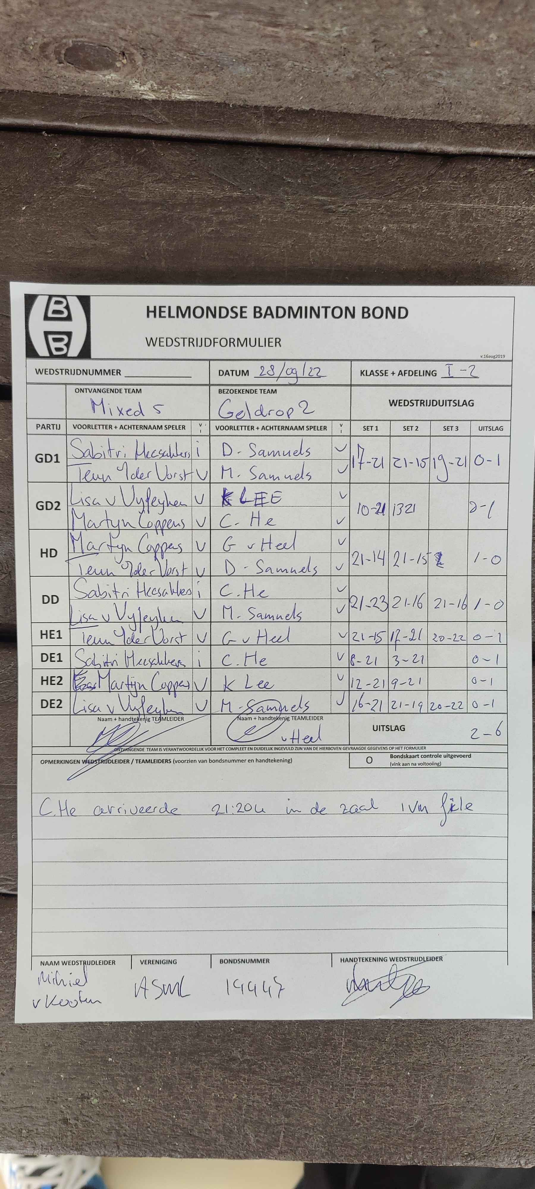| 2 | 1117 | Mixed 5 | - | Geldrop 2 | 15 |
