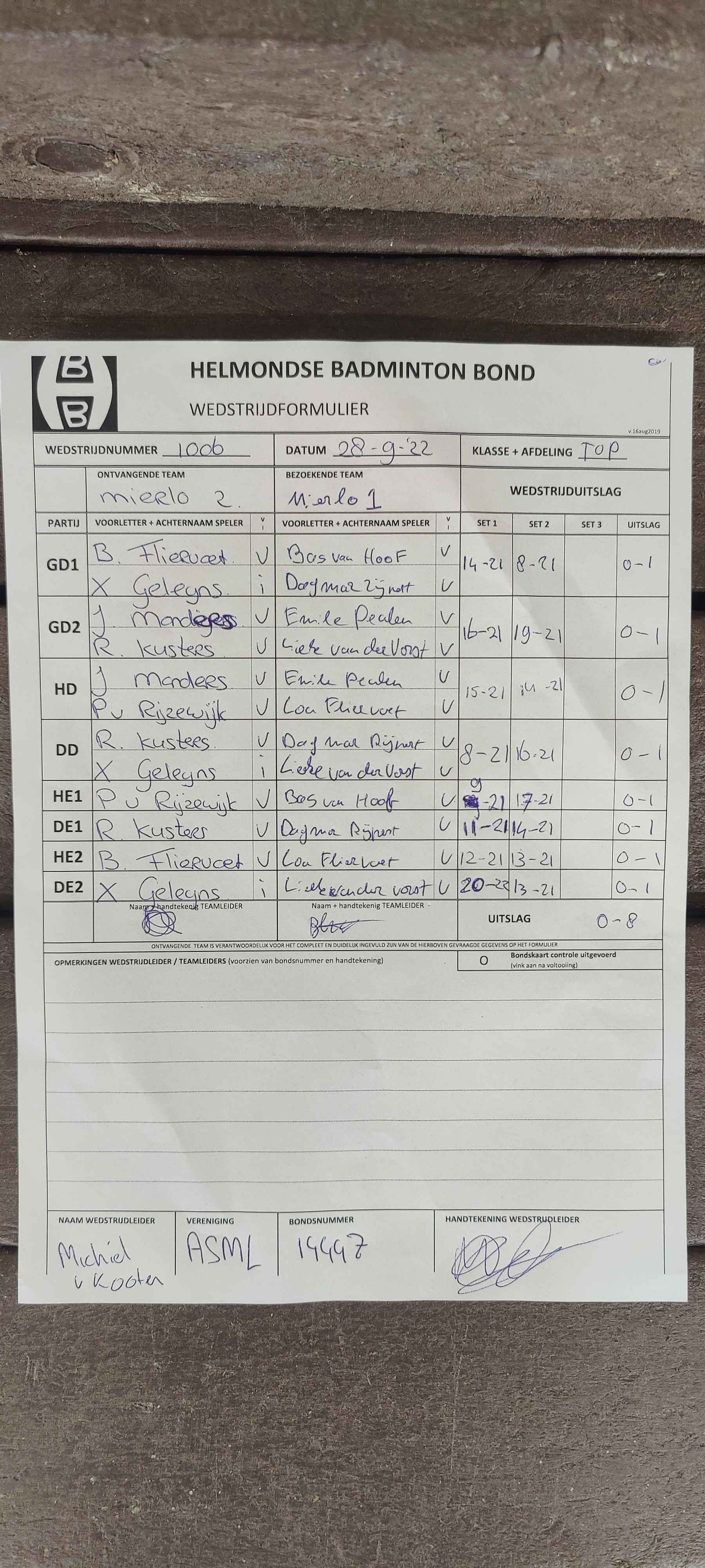 | TOP-Kampioen | 1001 | De Valken 1 | - | Smashing Bruang 1 | 1 | |