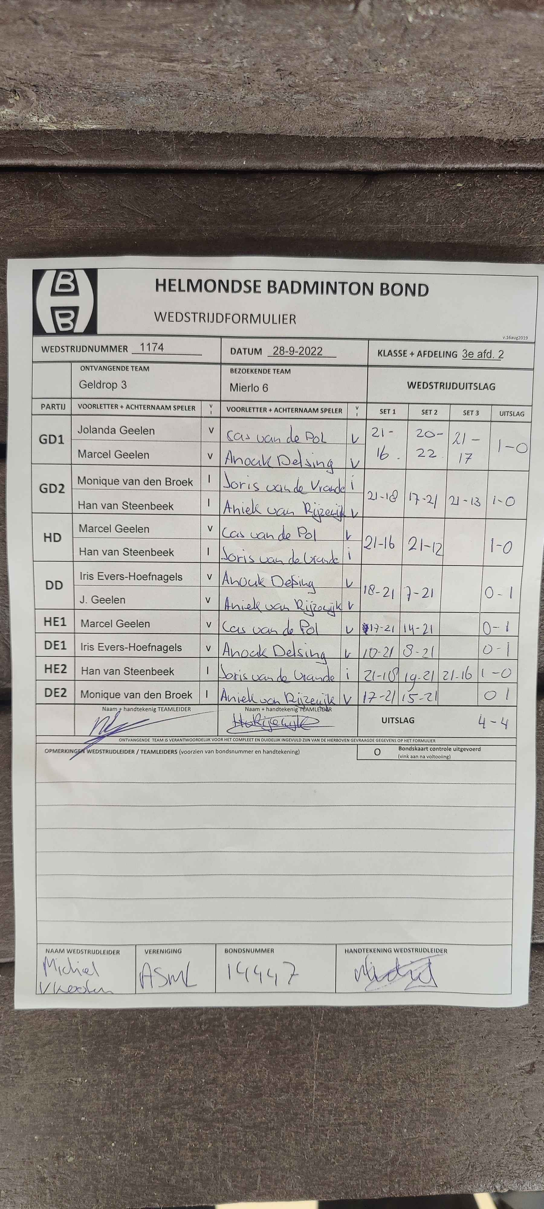 | 3-II | 1174 | Geldrop 3 | - | Mierlo 6 | 5 | |