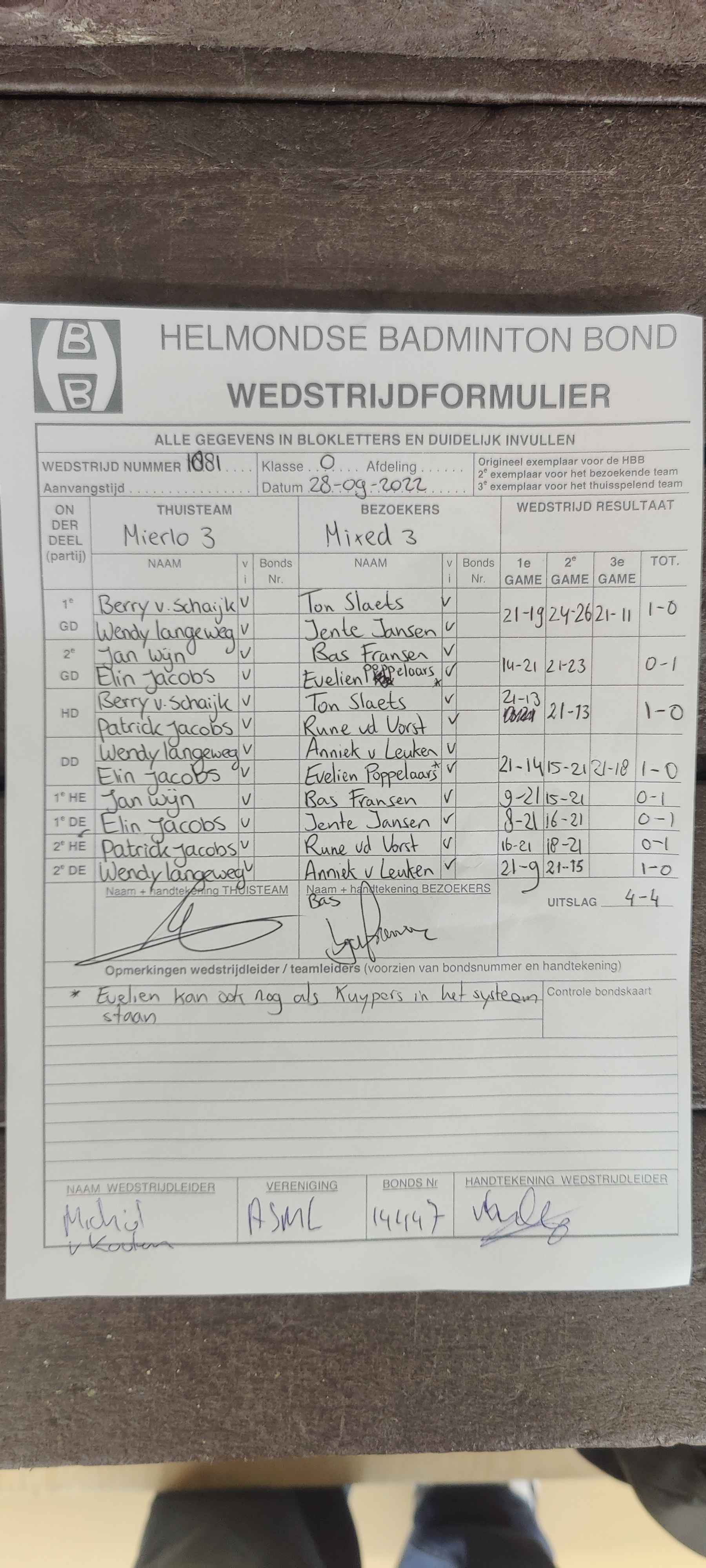 | O | 1081 | Mierlo 3 | - | Mixed 3 | 11 | |