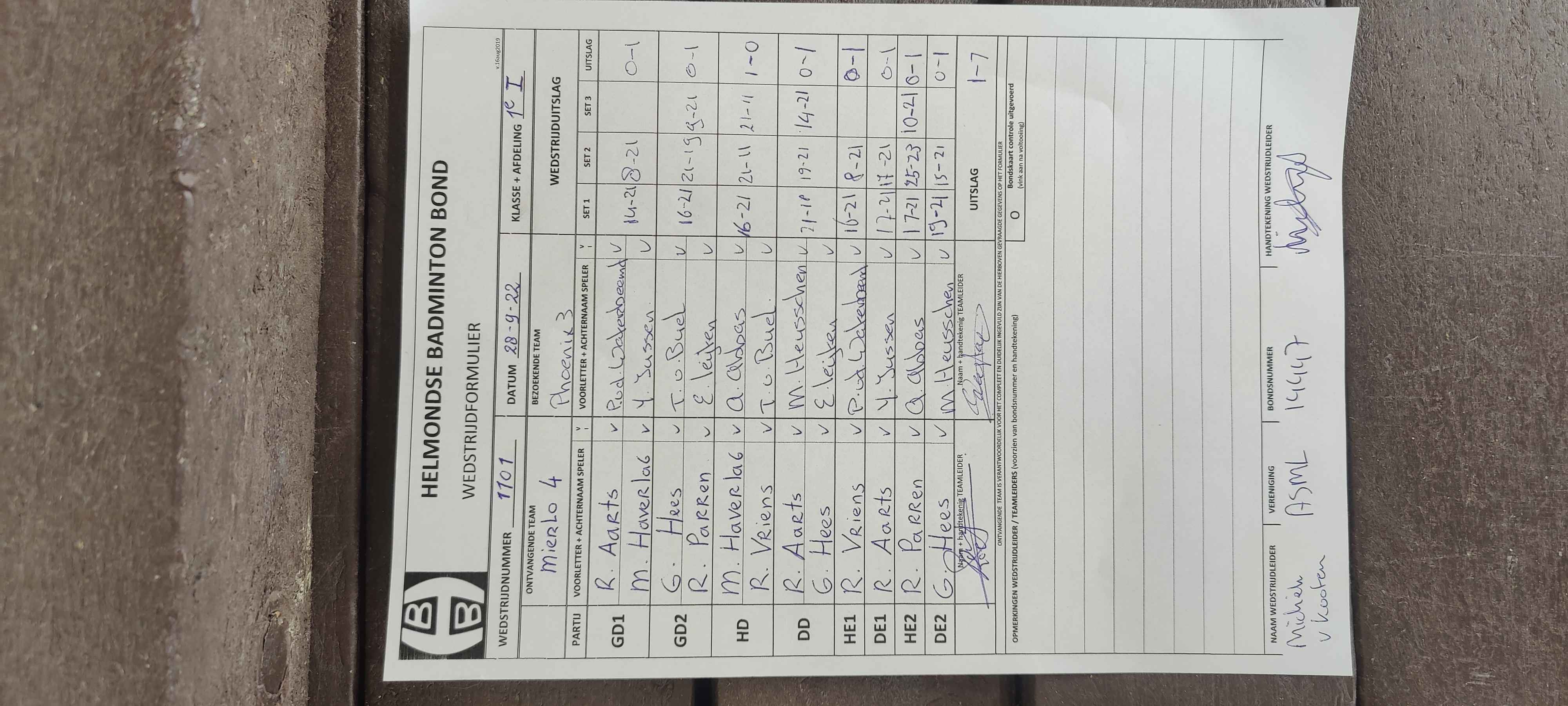 | Klasse | Nr | Thuis | - | Uit | Baan | |