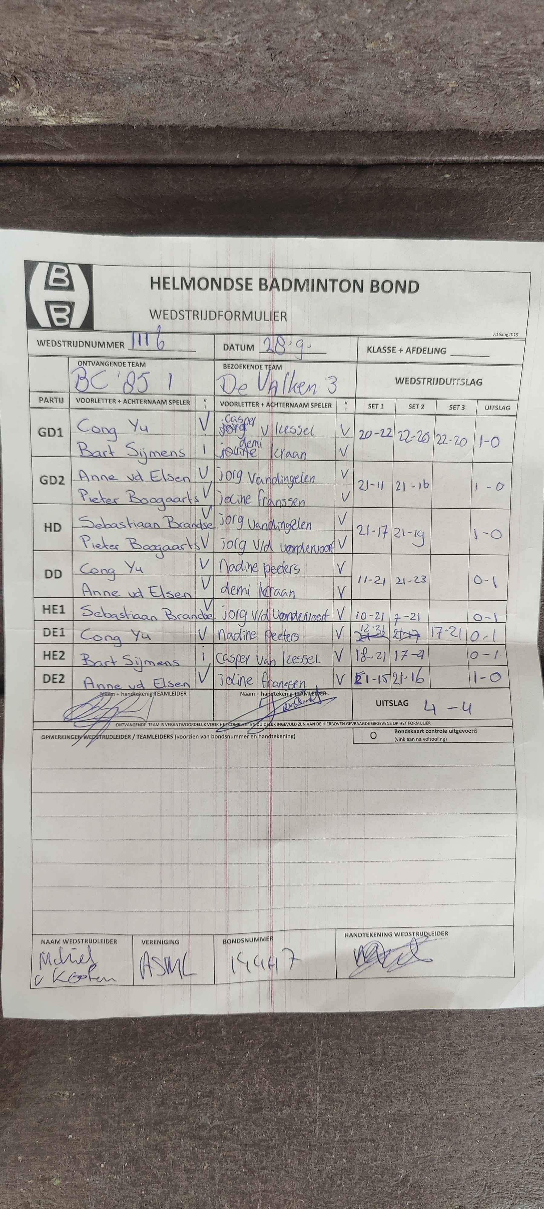 | 1 | 1116 | BC '85 1 | - | De Valken 3 | 14 | |