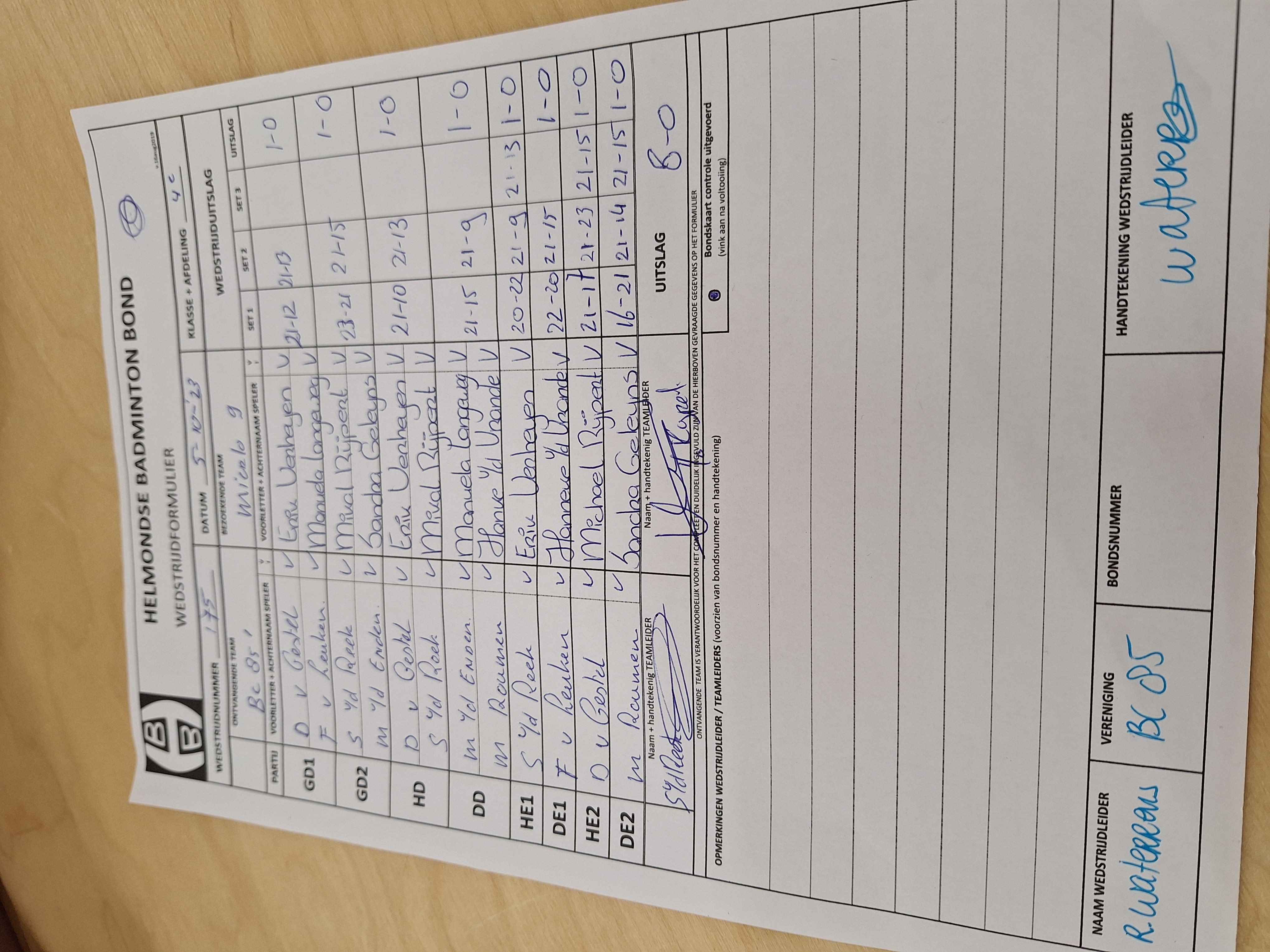 | 175 | do. 05-10-2023 | BC '85 1 | - | Mierlo 9 | 5 | 8 - 0 | |||