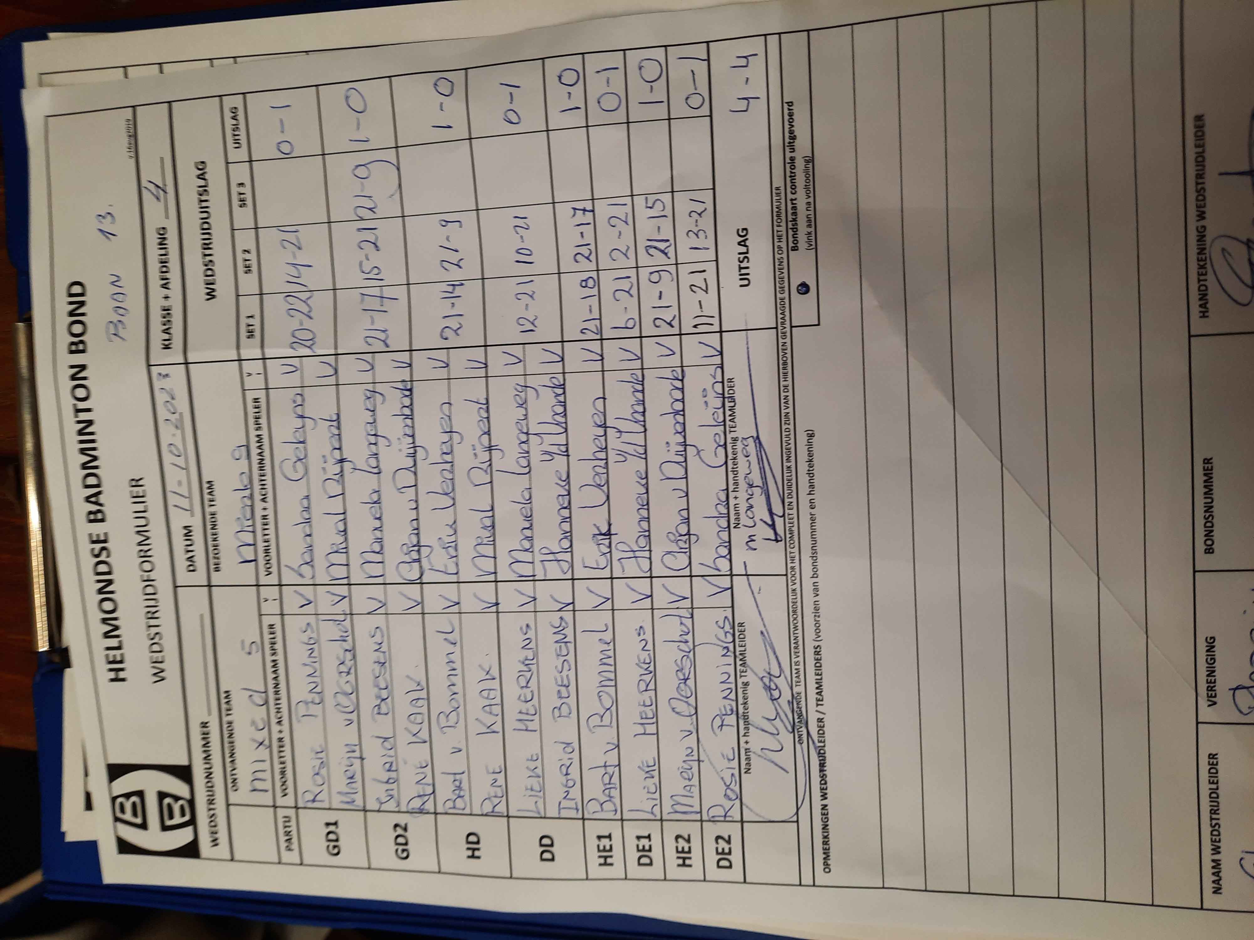 | 180 | wo. 11-10-2023 | Mixed 5 | - | Mierlo 9 | 13 | 4 - 4 | |||