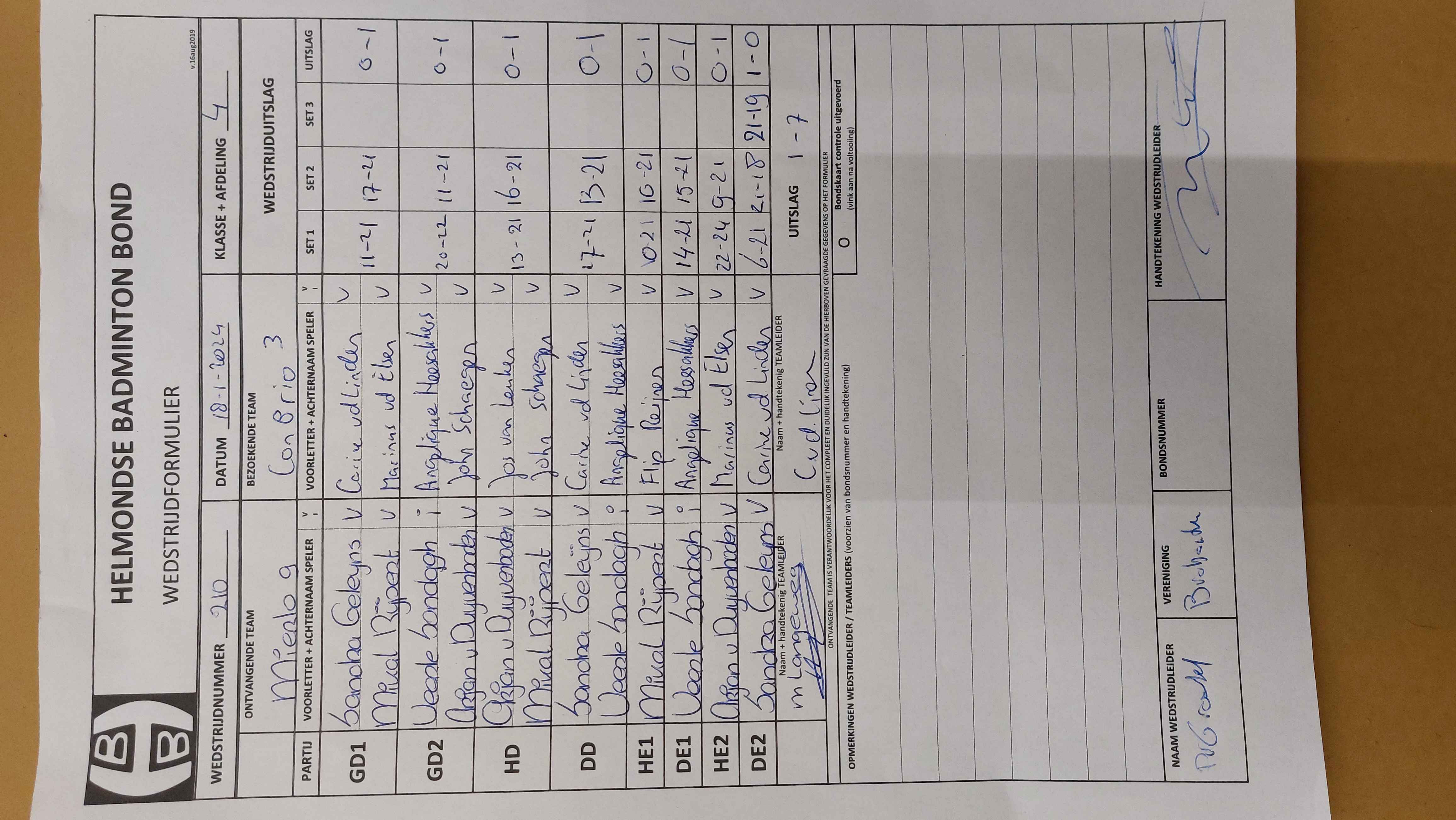 | 210 | do. 18-01-2024 | Mierlo 9 | - | Con Brio 3 | 13 | 1 - 7 | |||