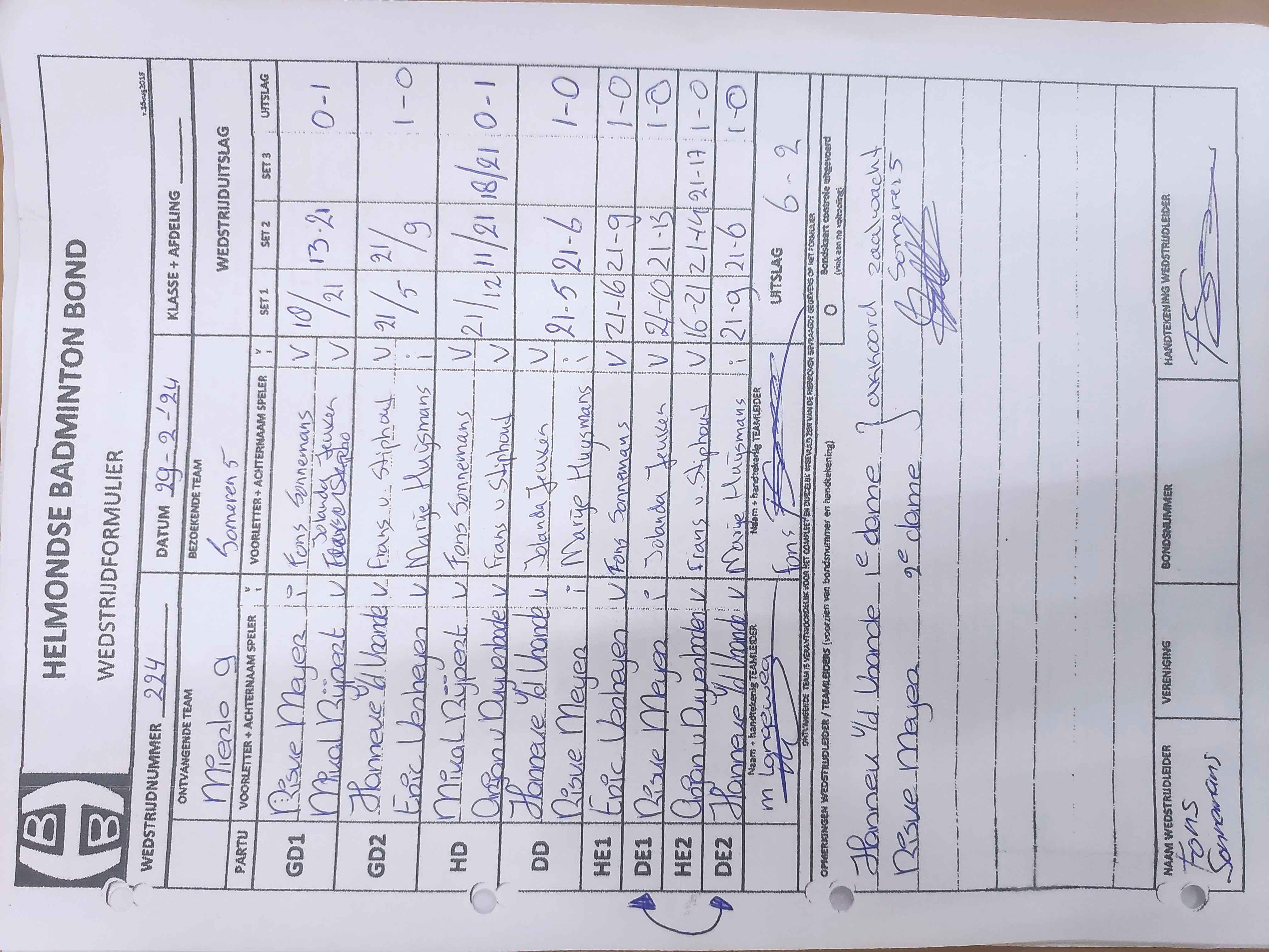 | 224 | do. 29-02-2024 | Mierlo 9 | - | Someren 5 | 3 | 6 - 2 | |||