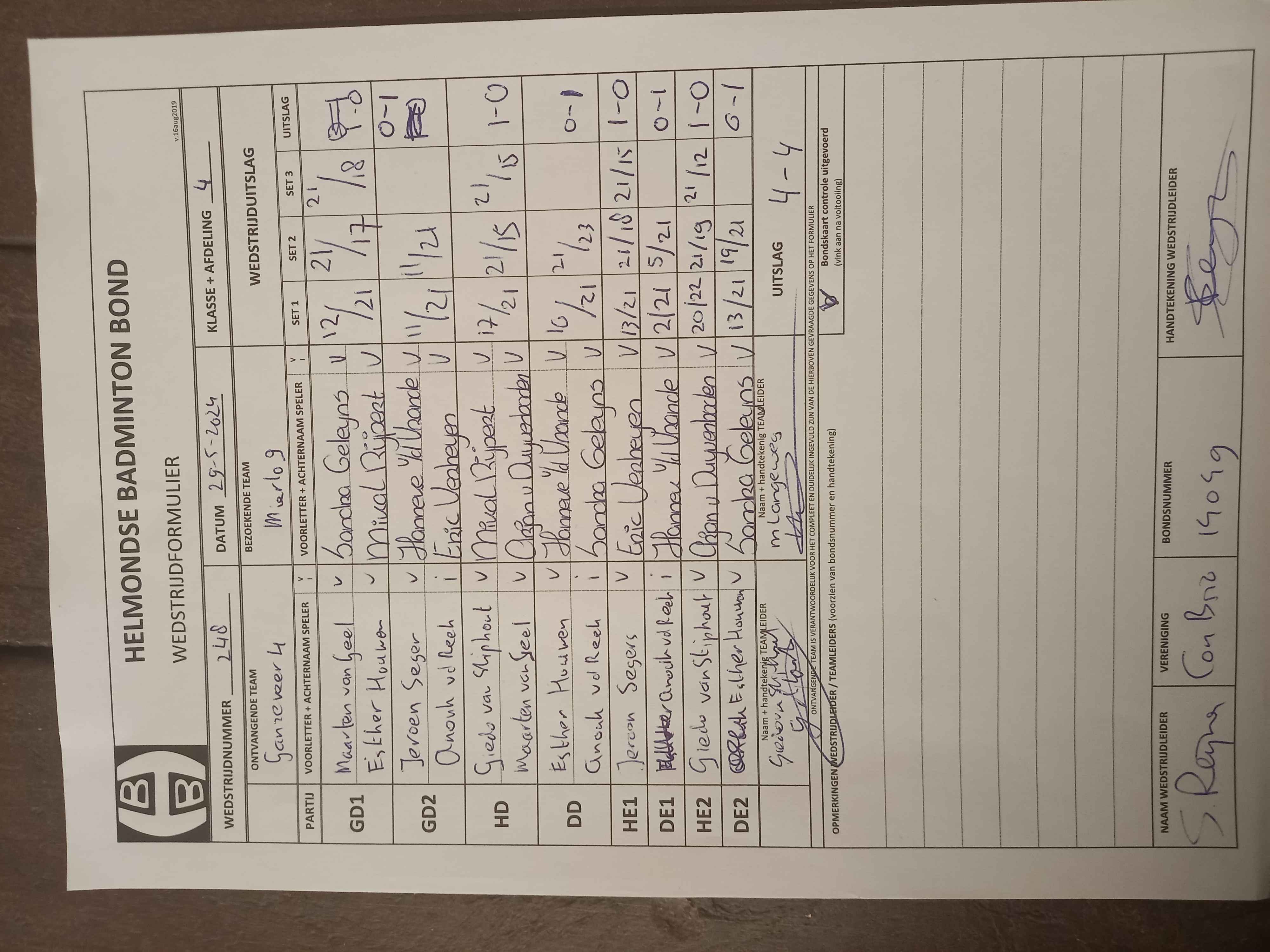 | 248 | wo. 29-05-2024 | Ganzeveer 4 | - | Mierlo 9 | 11 | 4 - 4 |