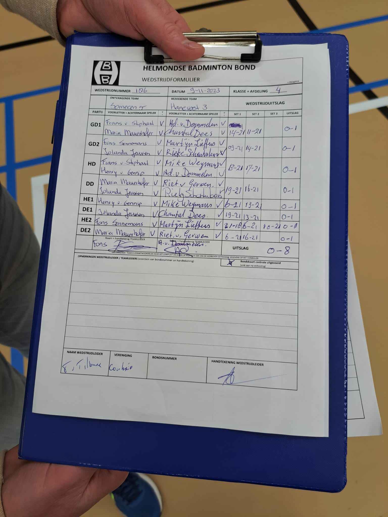 | 186 | do. 09-11-2023 | Someren 5 | - | Hanevoet 3 | 12 | 0 - 8 | |||