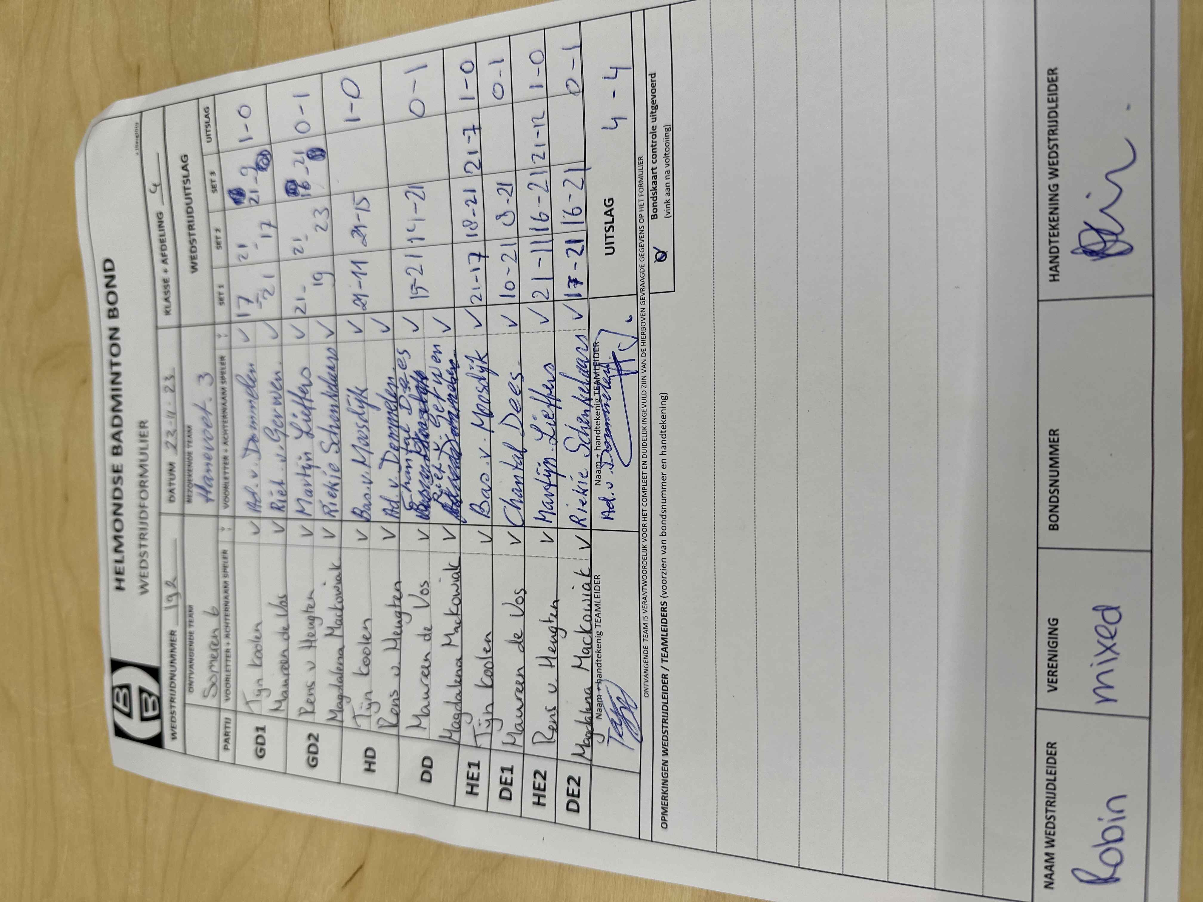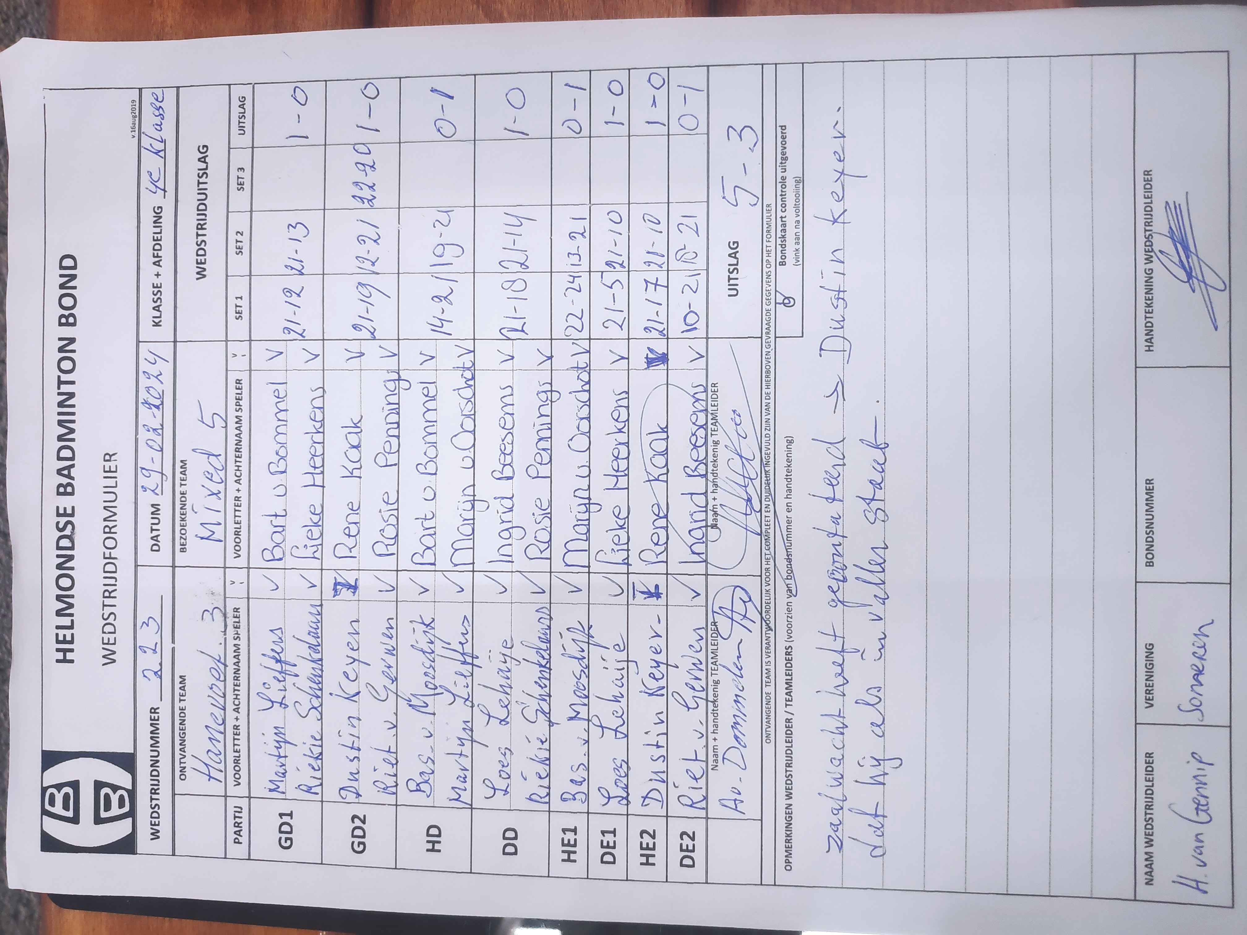| 223 | do. 29-02-2024 | Hanevoet 3 | - | Mixed 5 | 2 | 5 - 3 | |||
