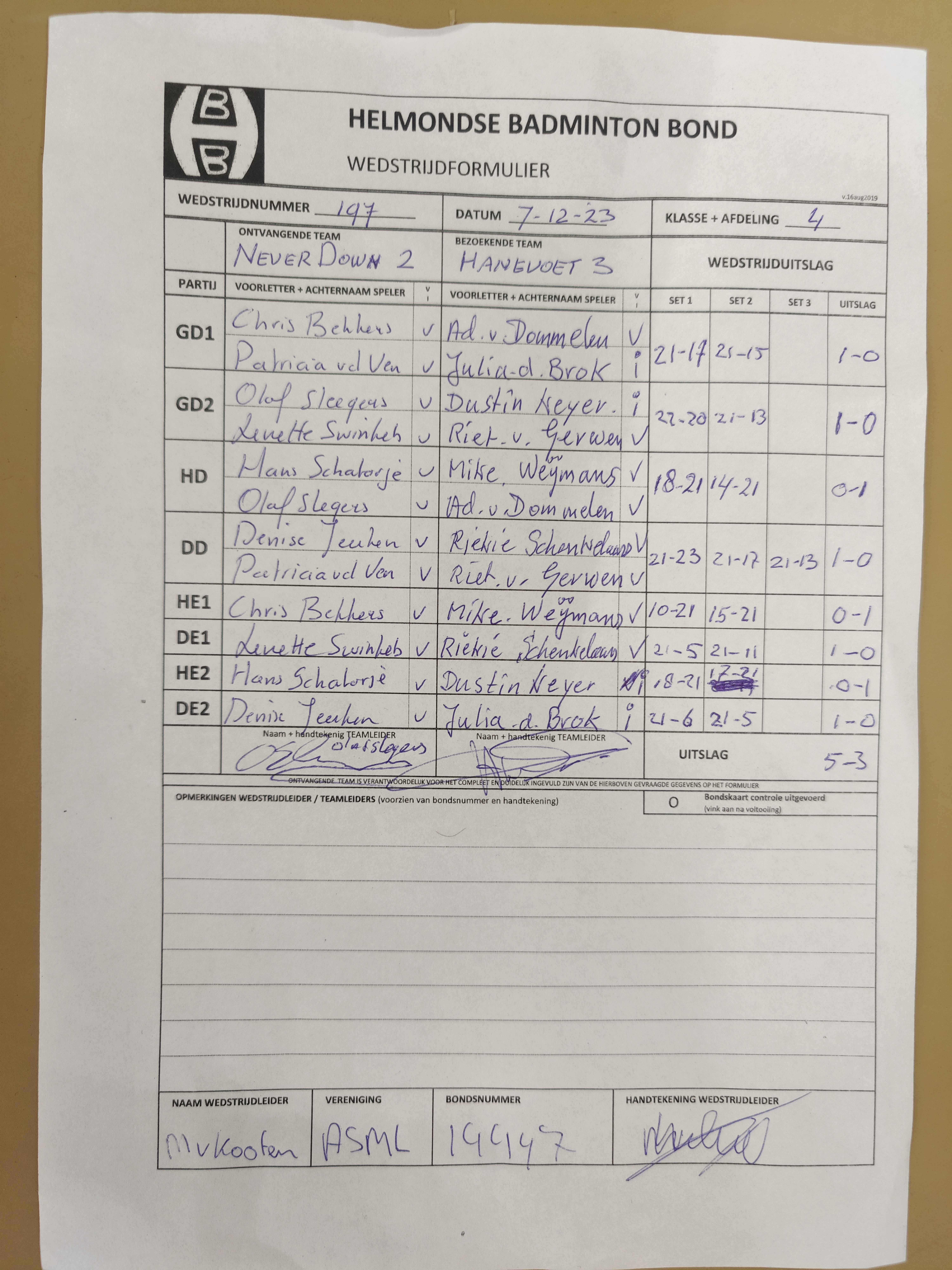 | 197 | do. 07-12-2023 | Never Down 2 | - | Hanevoet 3 | 12 | 5 - 3 | |||