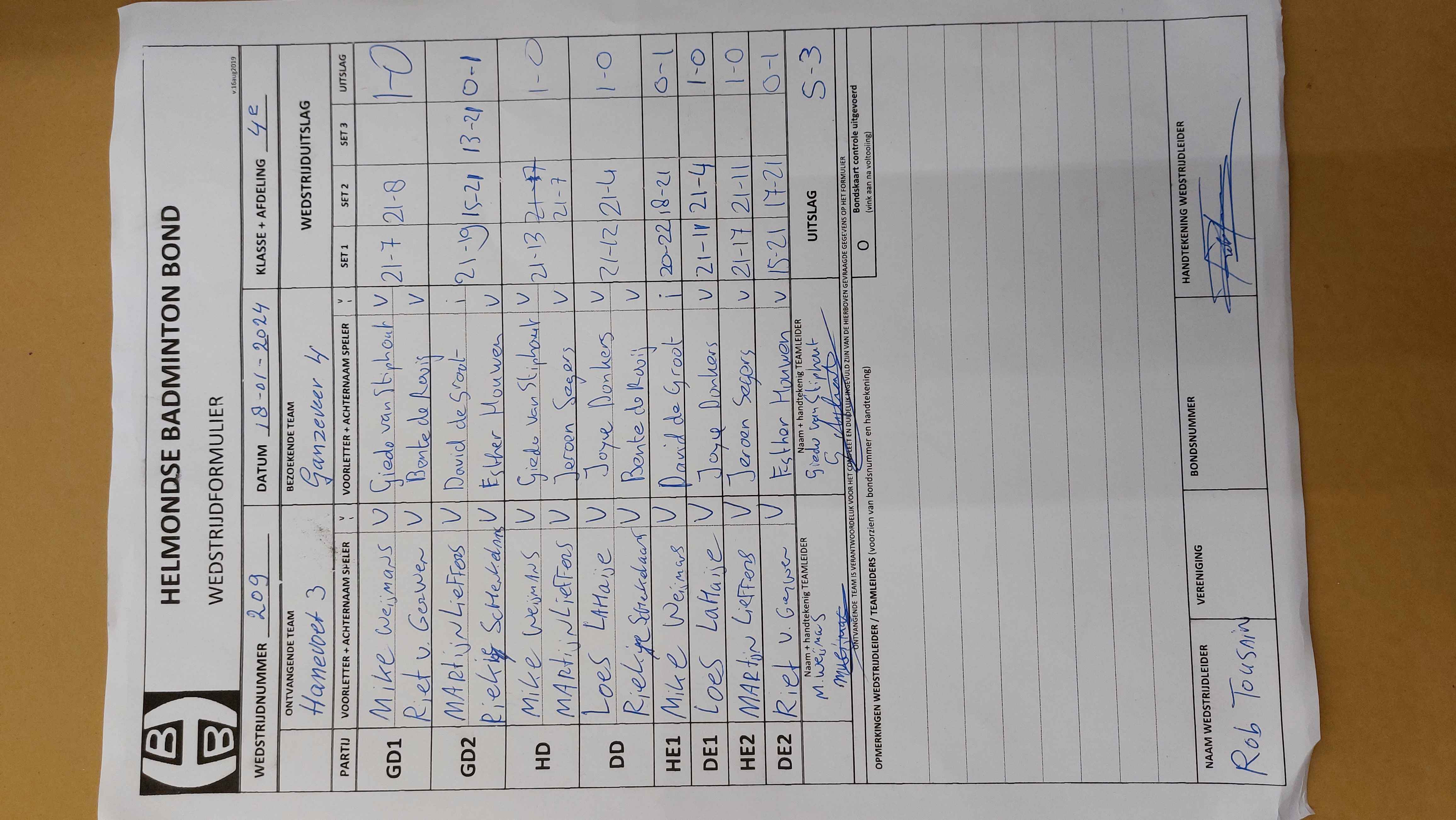 | 209 | do. 18-01-2024 | Hanevoet 3 | - | Ganzeveer 4 | 12 | 5 - 3 | |||