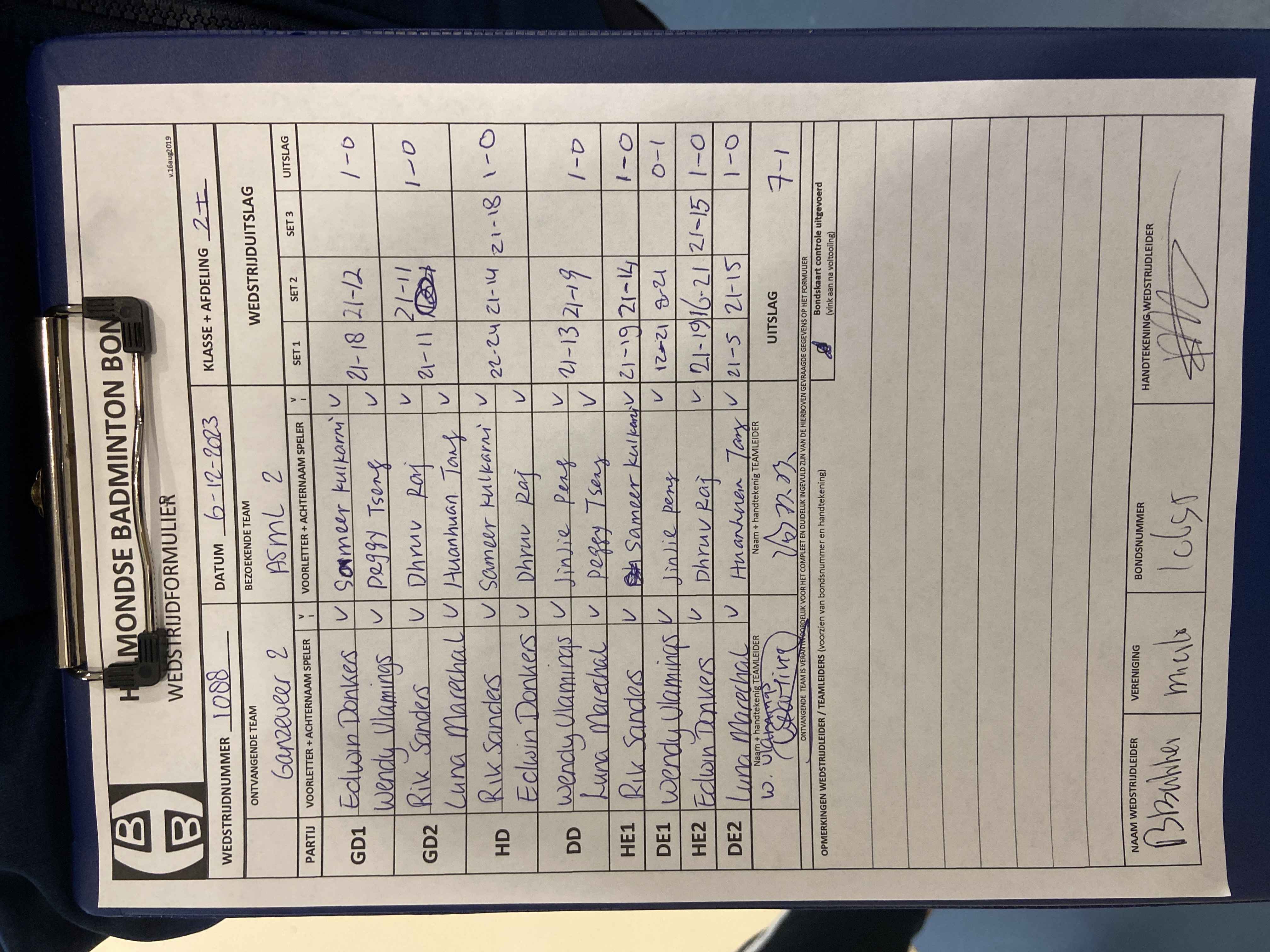 | 95 | wo. 25-10-2023 | ASML 2 | - | Mierlo 4 | 1 | 1 - 7 | |||