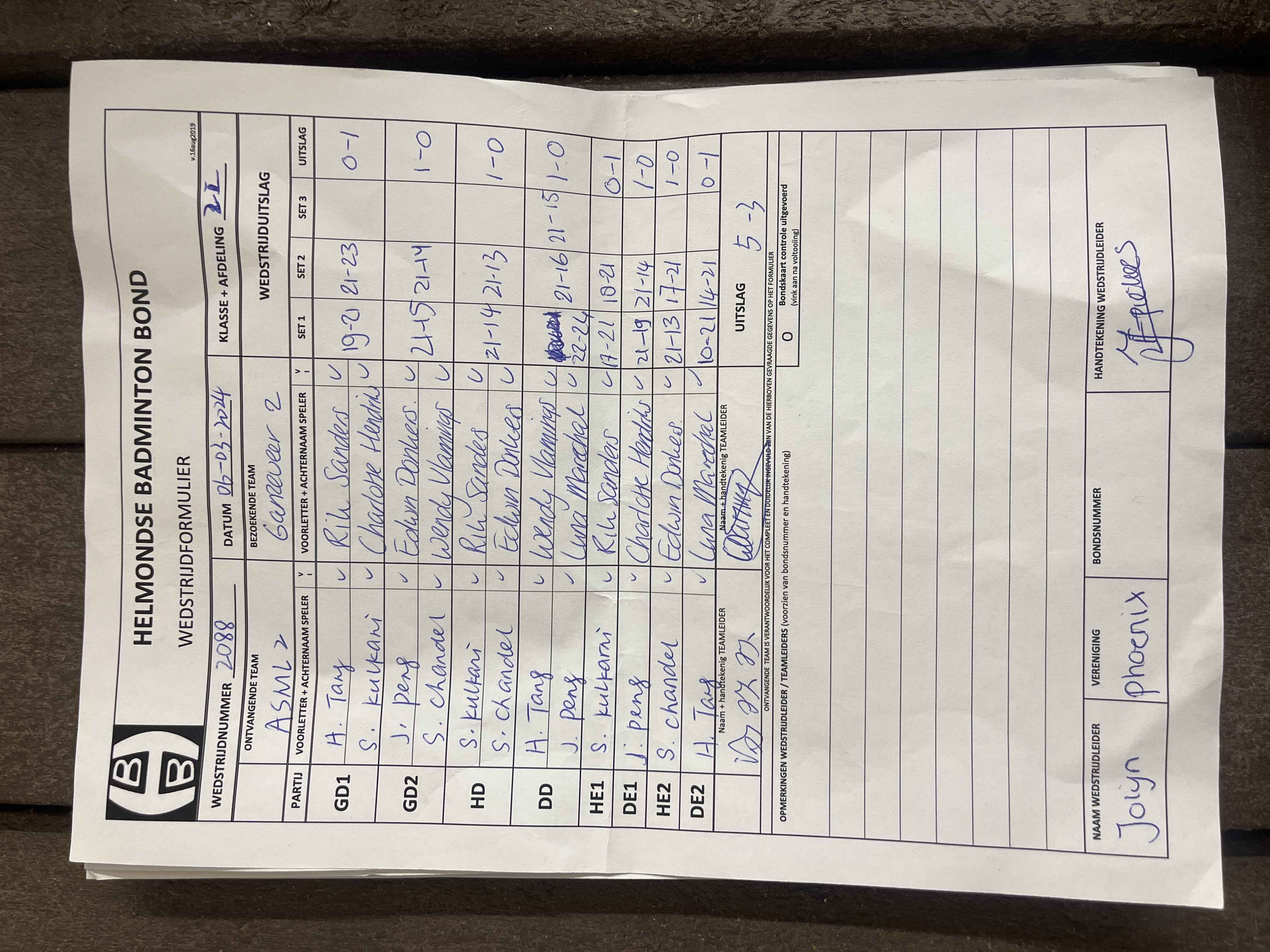 | 1099 | wo. 21-02-2024 | Mierlo 5 | - | ASML 2 | 1 | 5 - 3 | |||