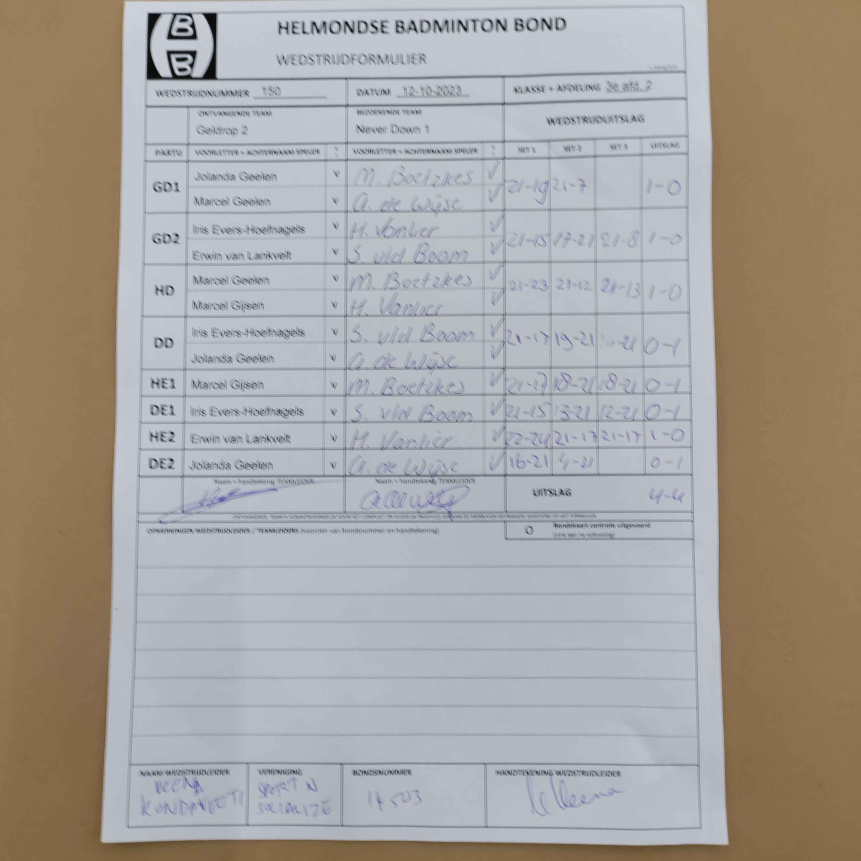 | 150 | do. 12-10-2023 | Geldrop 2 | - | Never Down 1 | 4 | 4 - 4 | |||