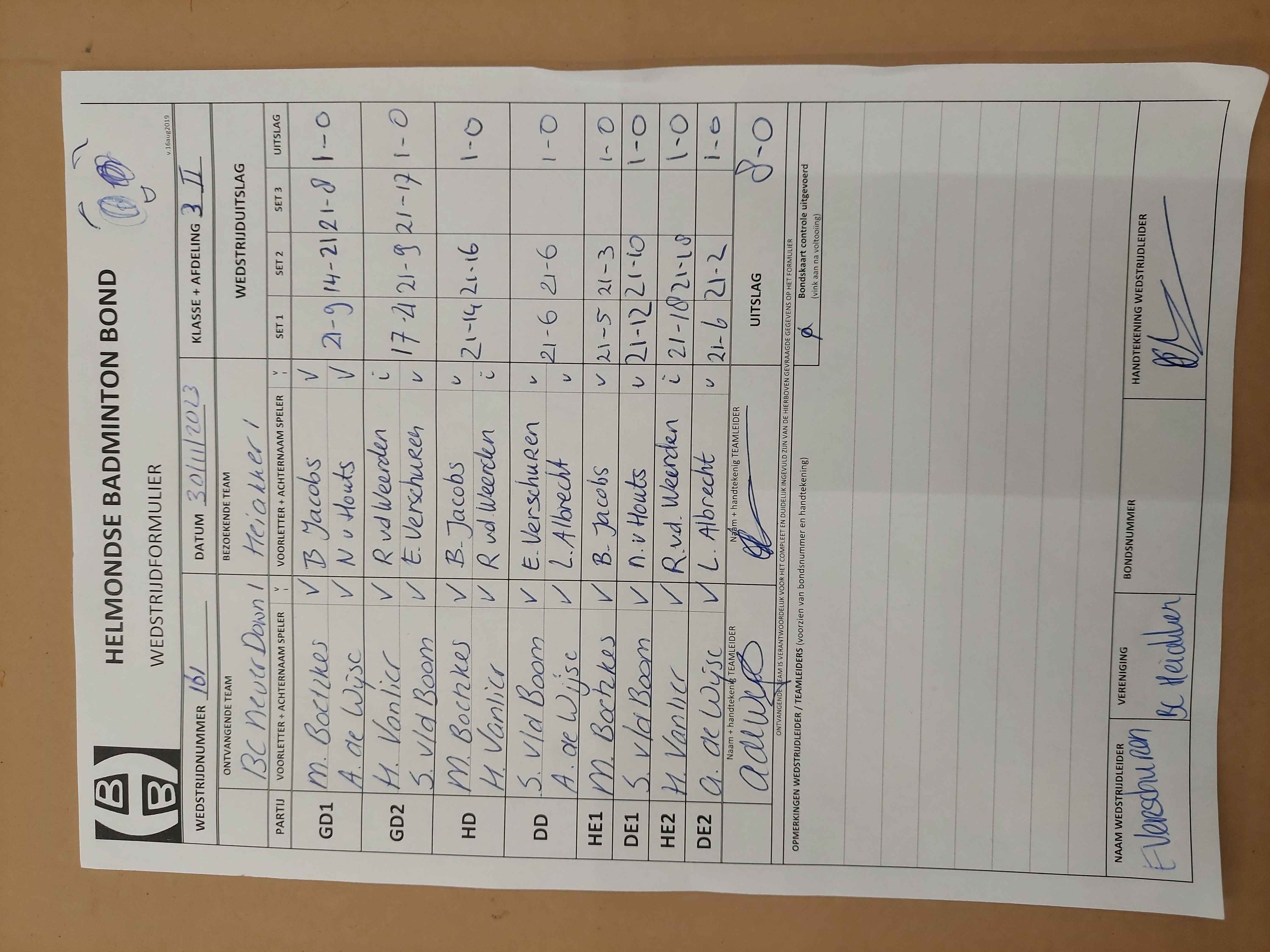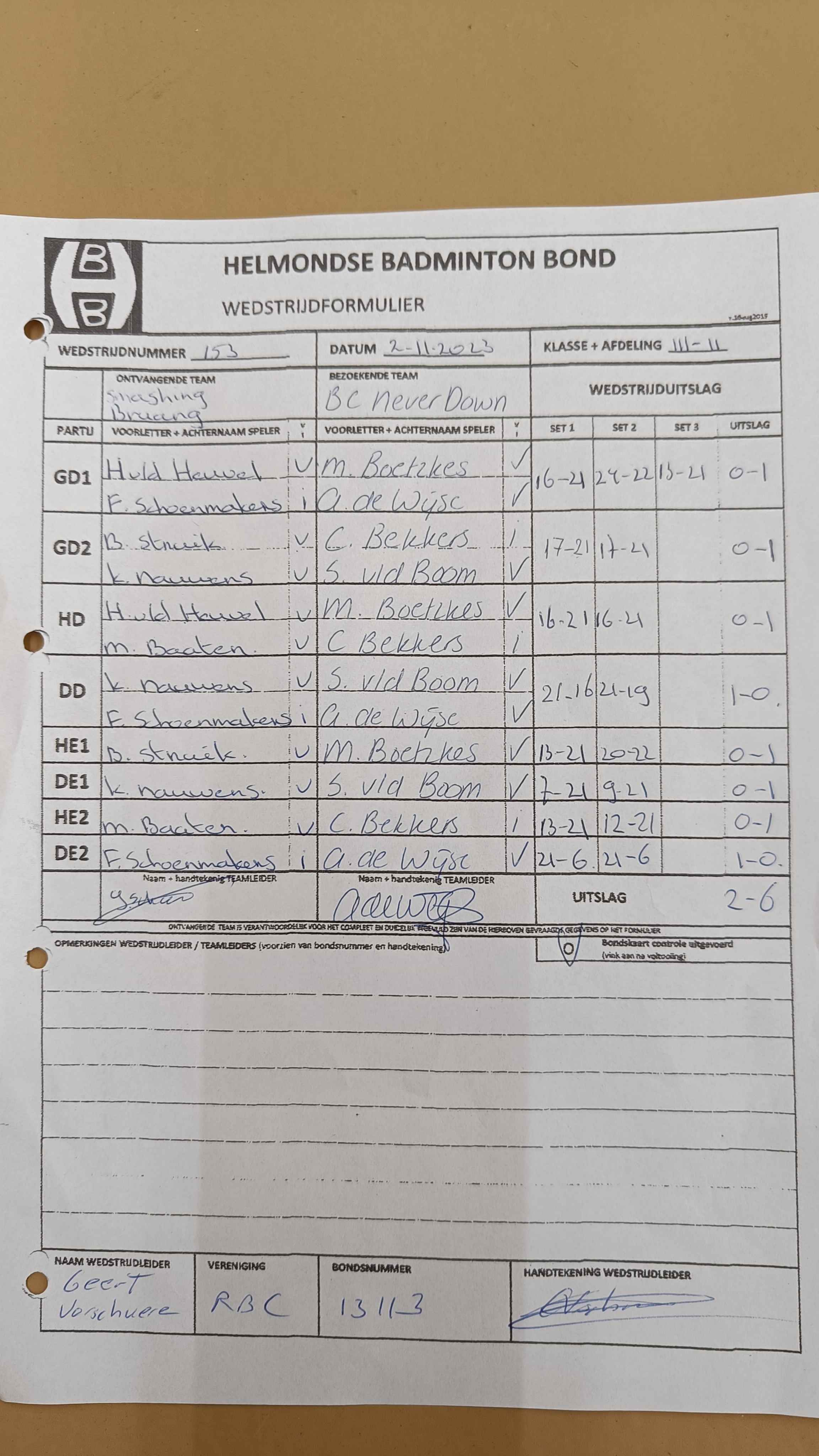 | 156 | do. 16-11-2023 | Never Down 1 | - | Gemert 1 | 3 | 3 - 5 | |||