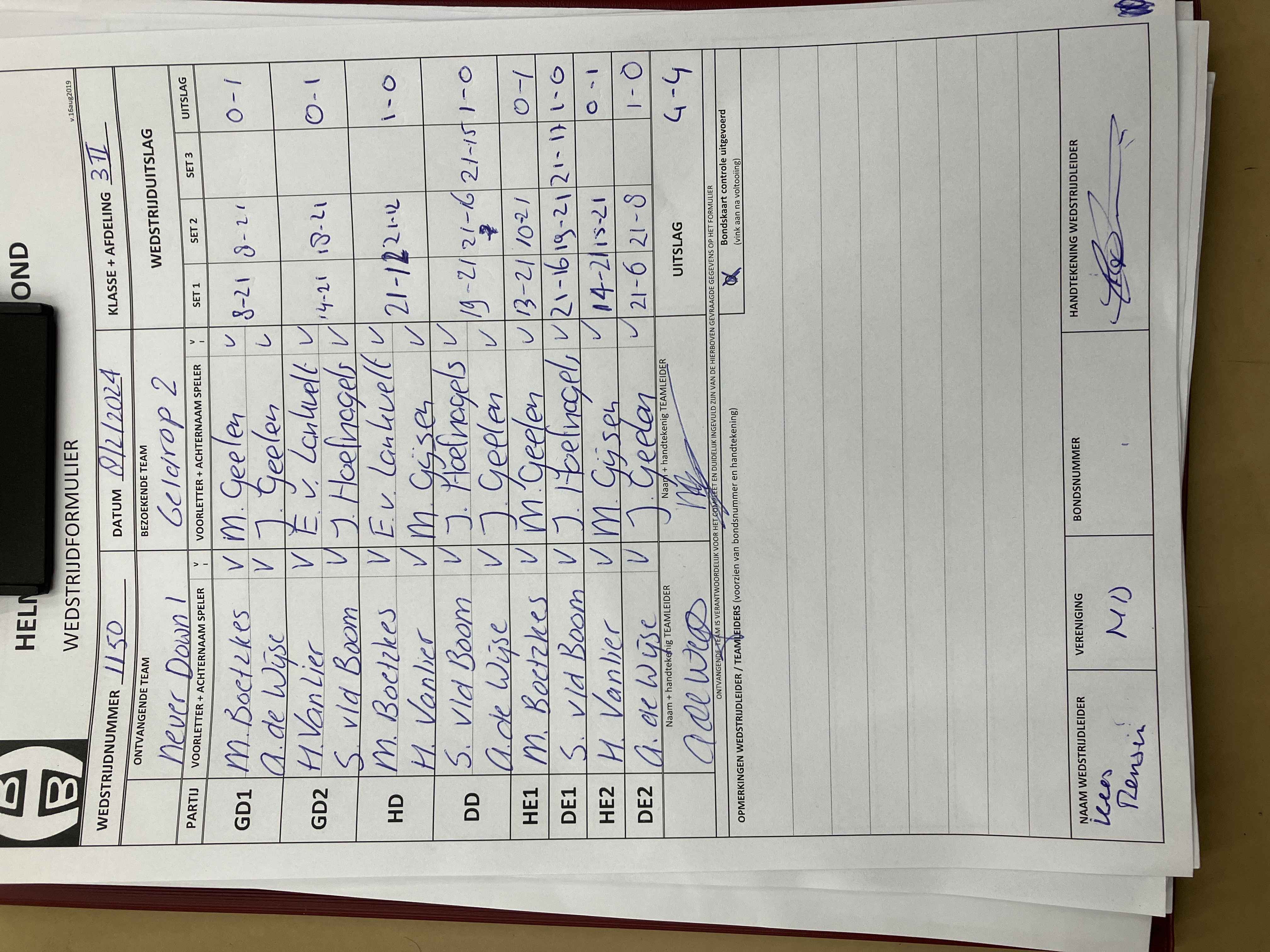 | 1150 | do. 08-02-2024 | Never Down 1 | - | Geldrop 2 | 15 | 4 - 4 | |||