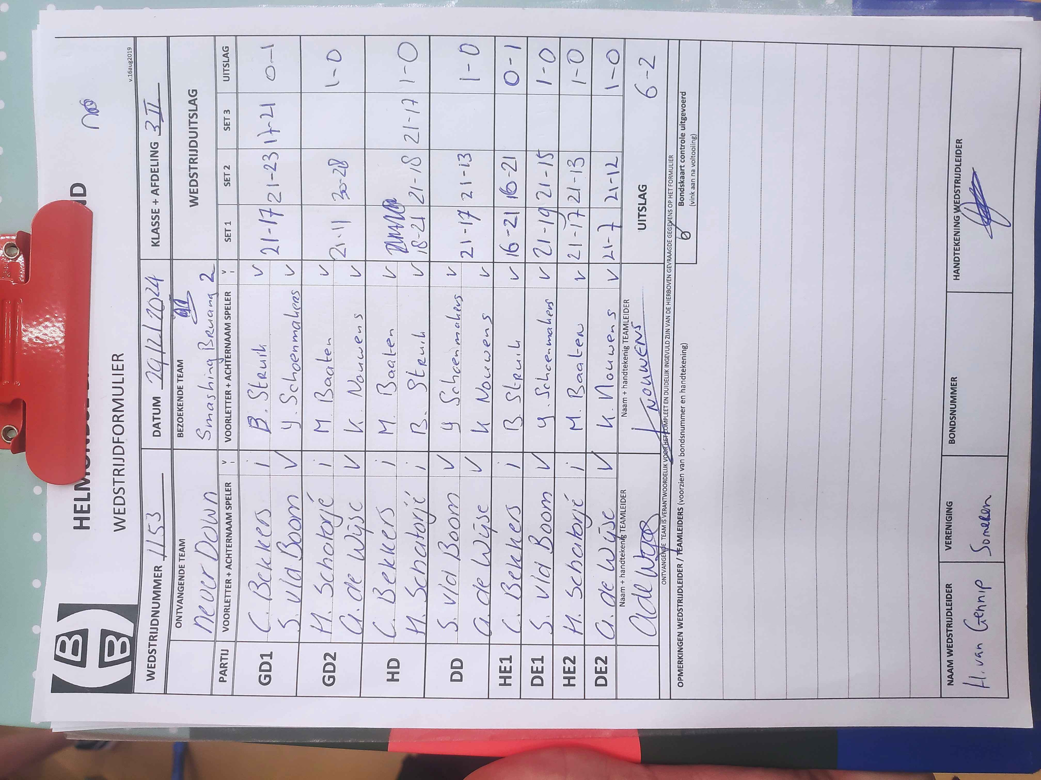 | 1153 | do. 29-02-2024 | Never Down 1 | - | Smashing Bruang 2 | 12 | 6 - 2 | |||
