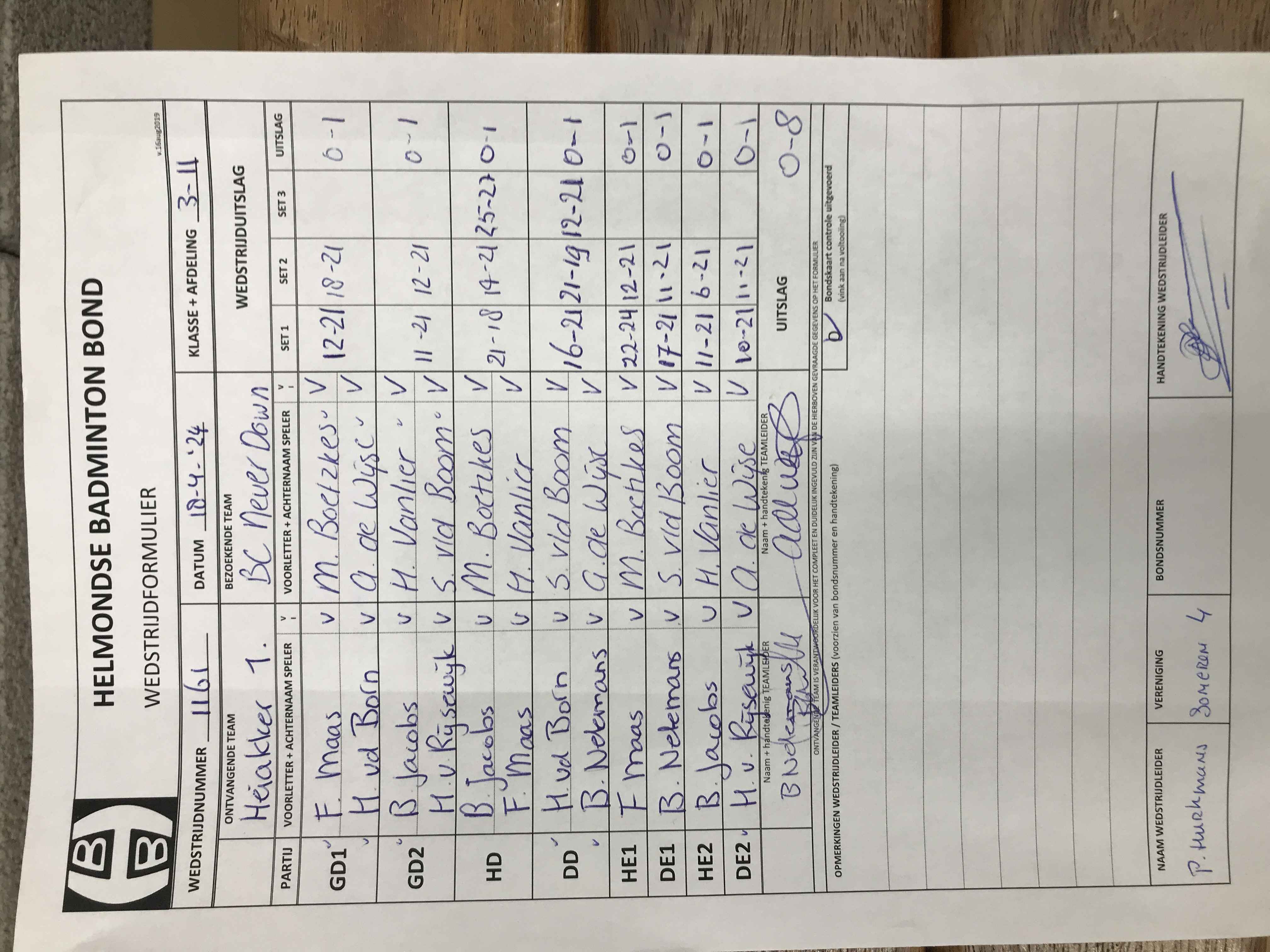 | 1156 | do. 28-03-2024 | Gemert 1 | - | Never Down 1 | 1 | 8 - 0 | |||