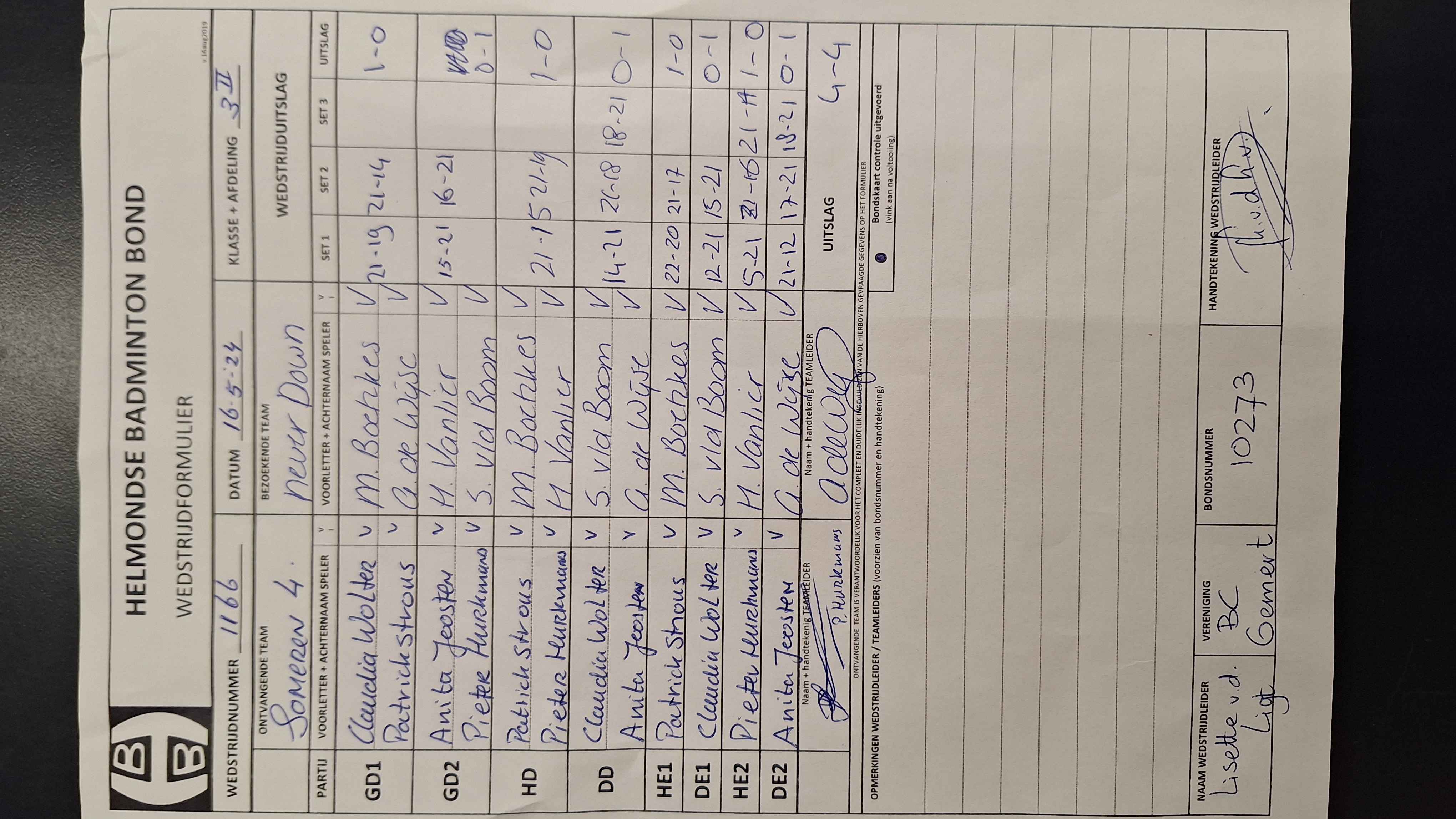| 1166 | do. 16-05-2024 | Someren 4 | - | Never Down 1 | 2 | 4 - 4 | |||