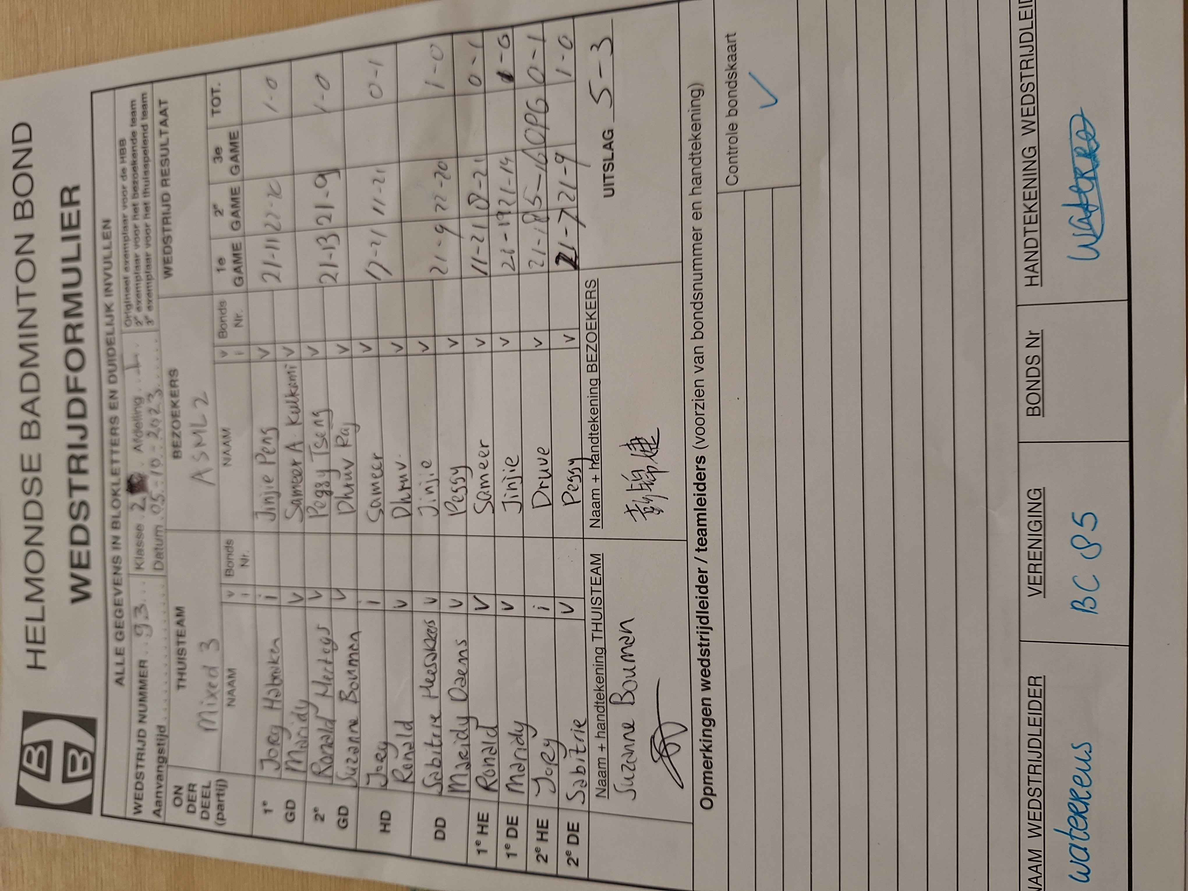 | 97 | wo. 11-10-2023 | Mixed 3 | - | Mierlo 5 | 12 | 4 - 4 | |||
