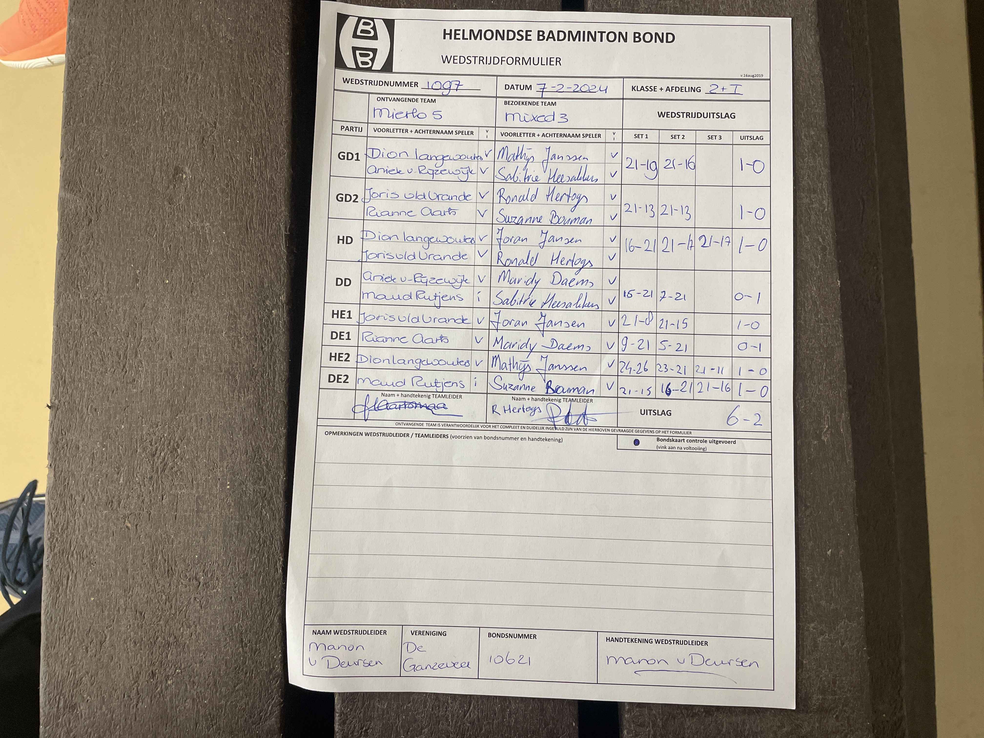 | 1097 | wo. 07-02-2024 | Mierlo 5 | - | Mixed 3 | 2 | 6 - 2 | |||