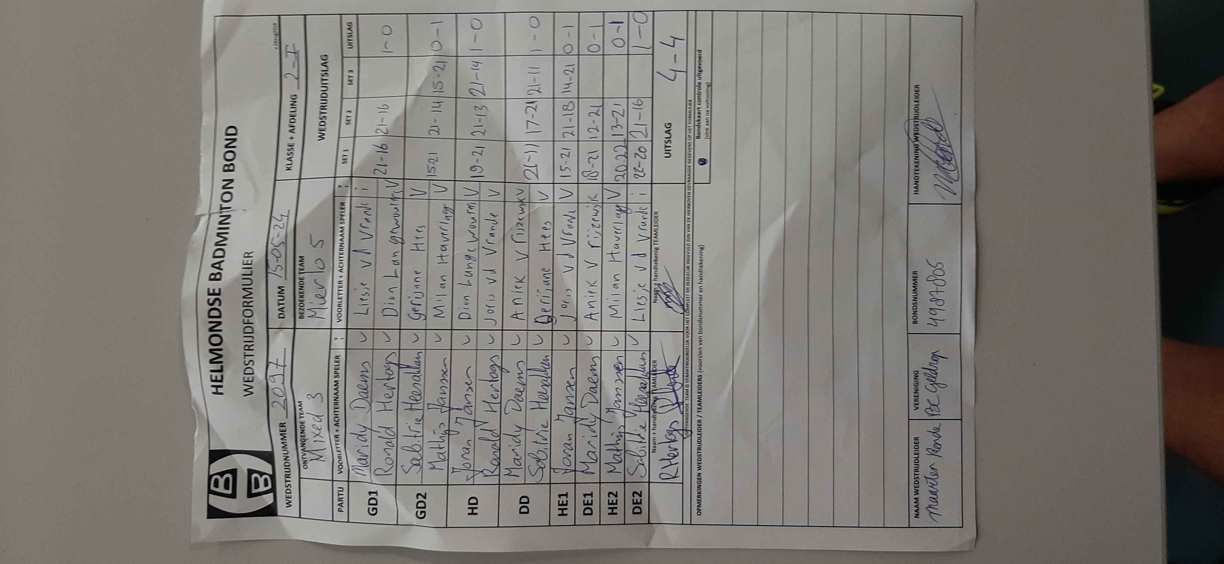 | 2097 | wo. 15-05-2024 | Mixed 3 | - | Mierlo 5 | 1 | 4 - 4 | |||