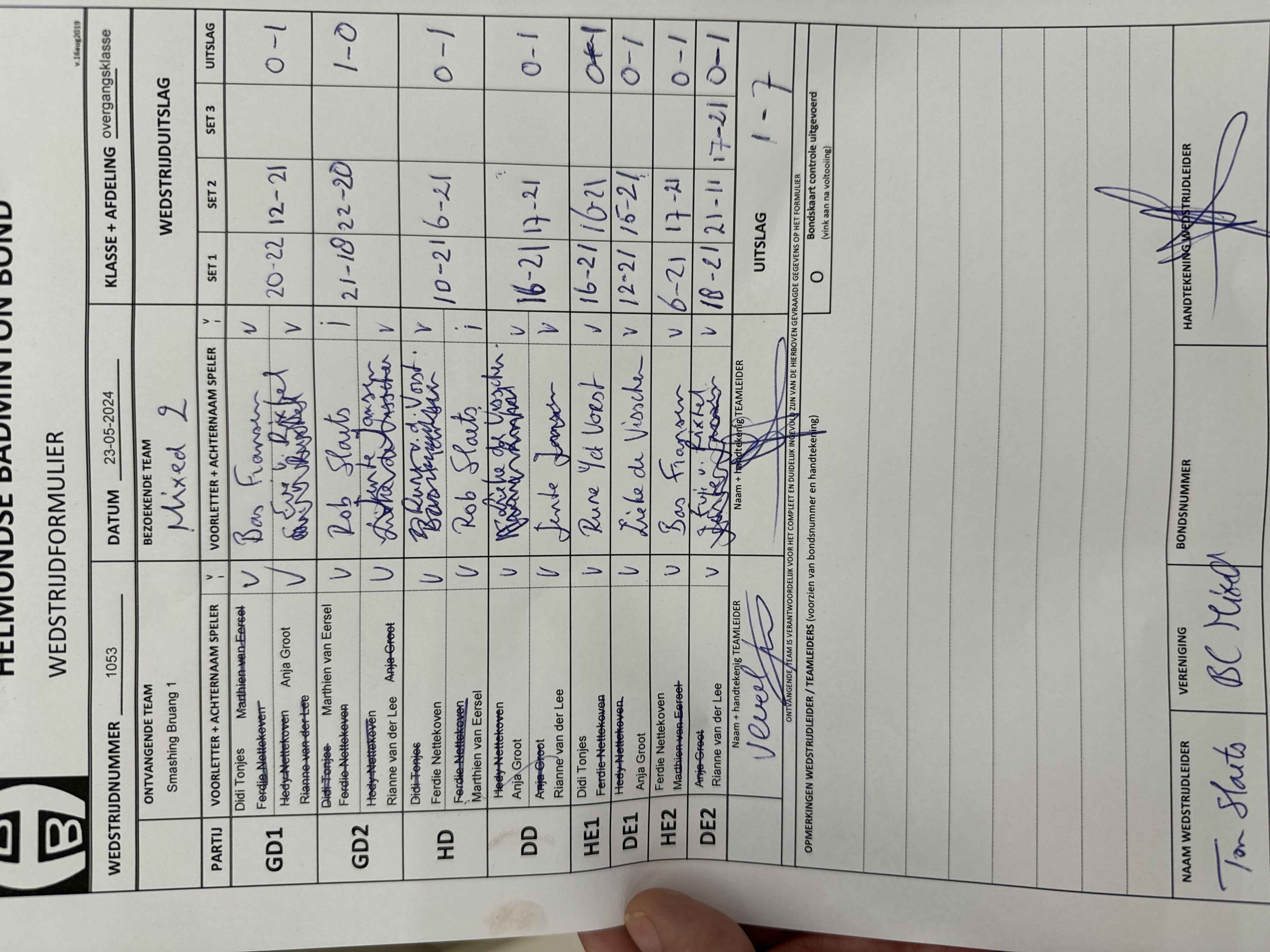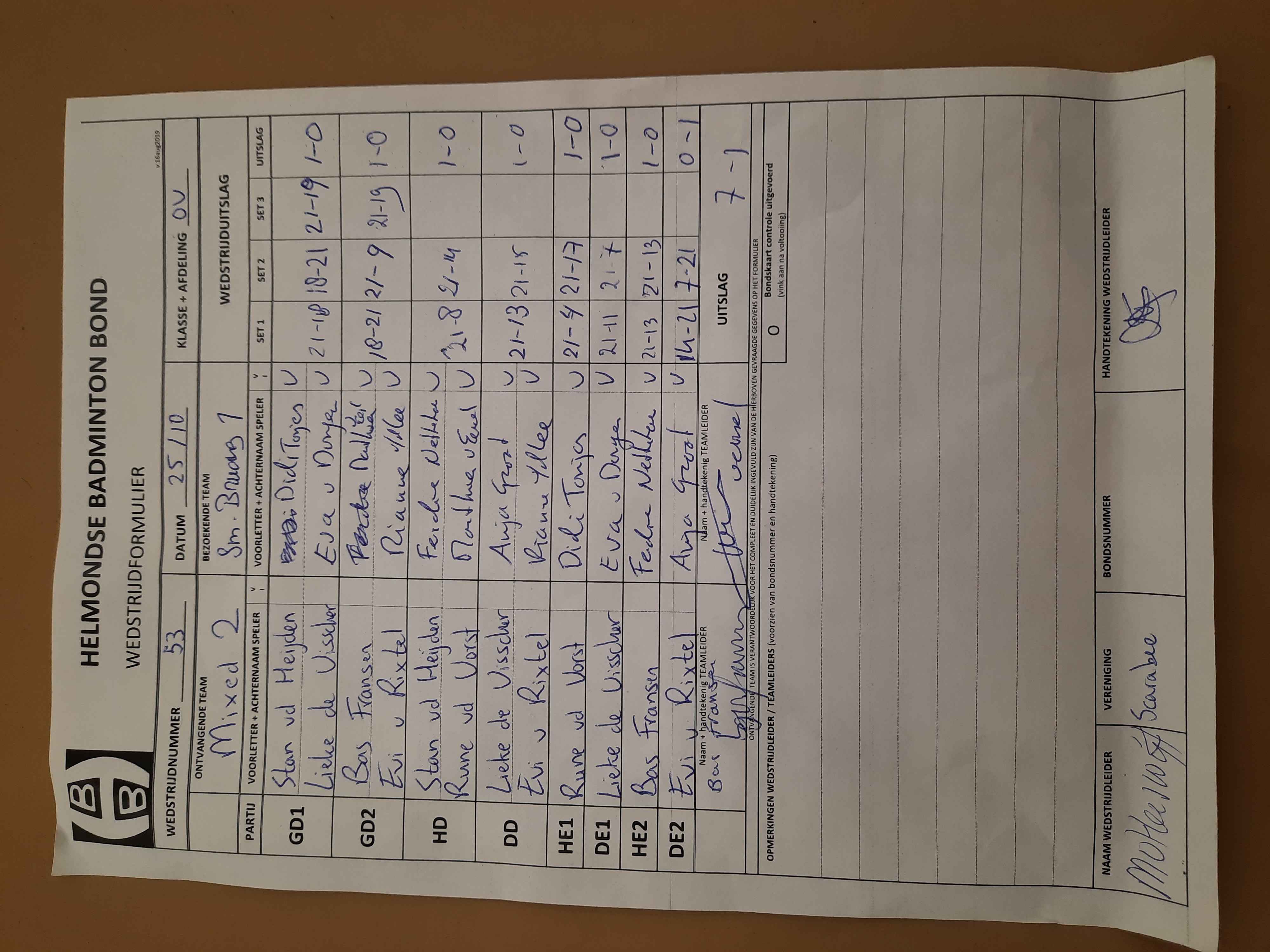 | 53 | wo. 25-10-2023 | Mixed 2 | - | Smashing Bruang 1 | 13 | 7 - 1 | |||