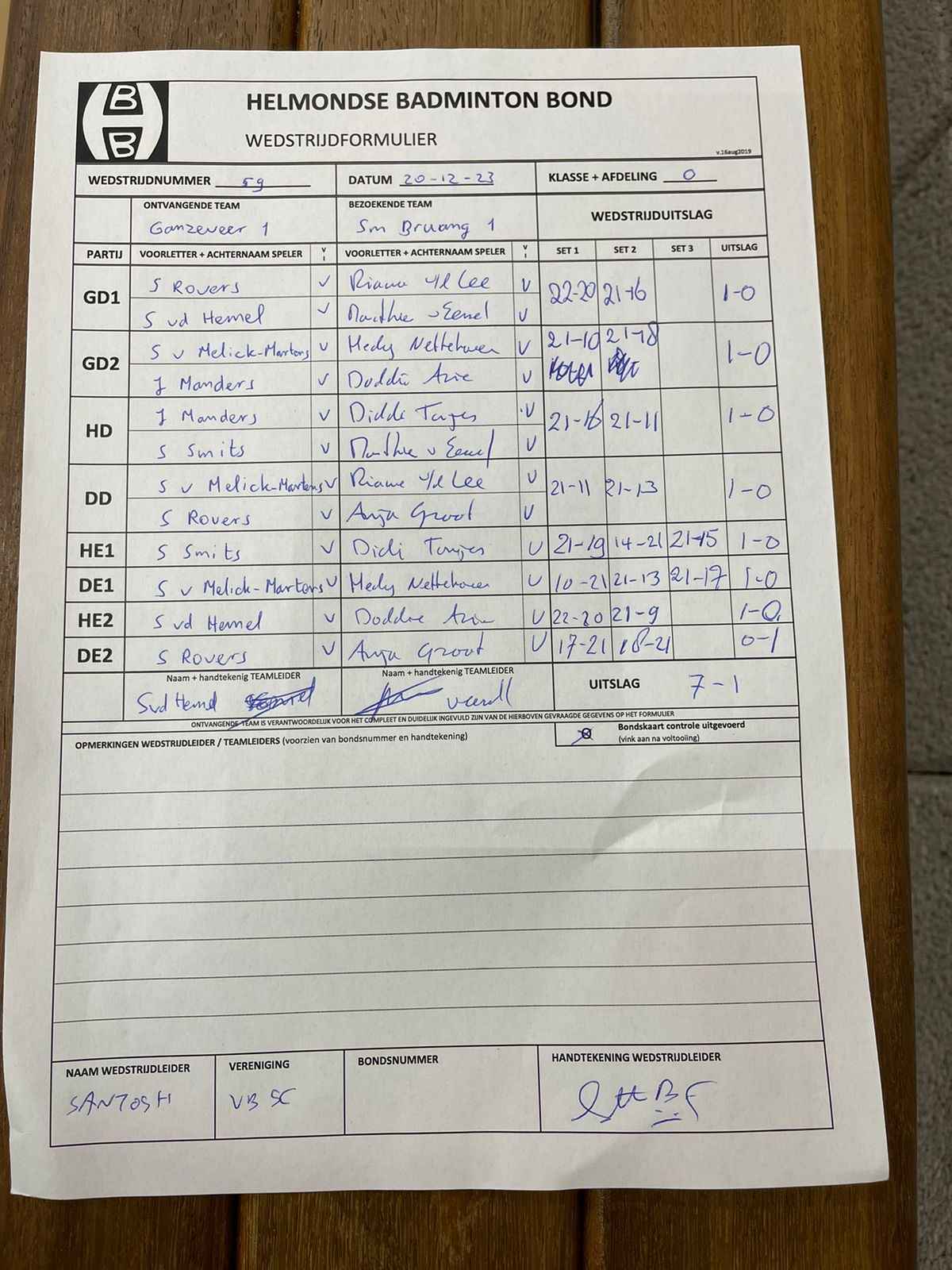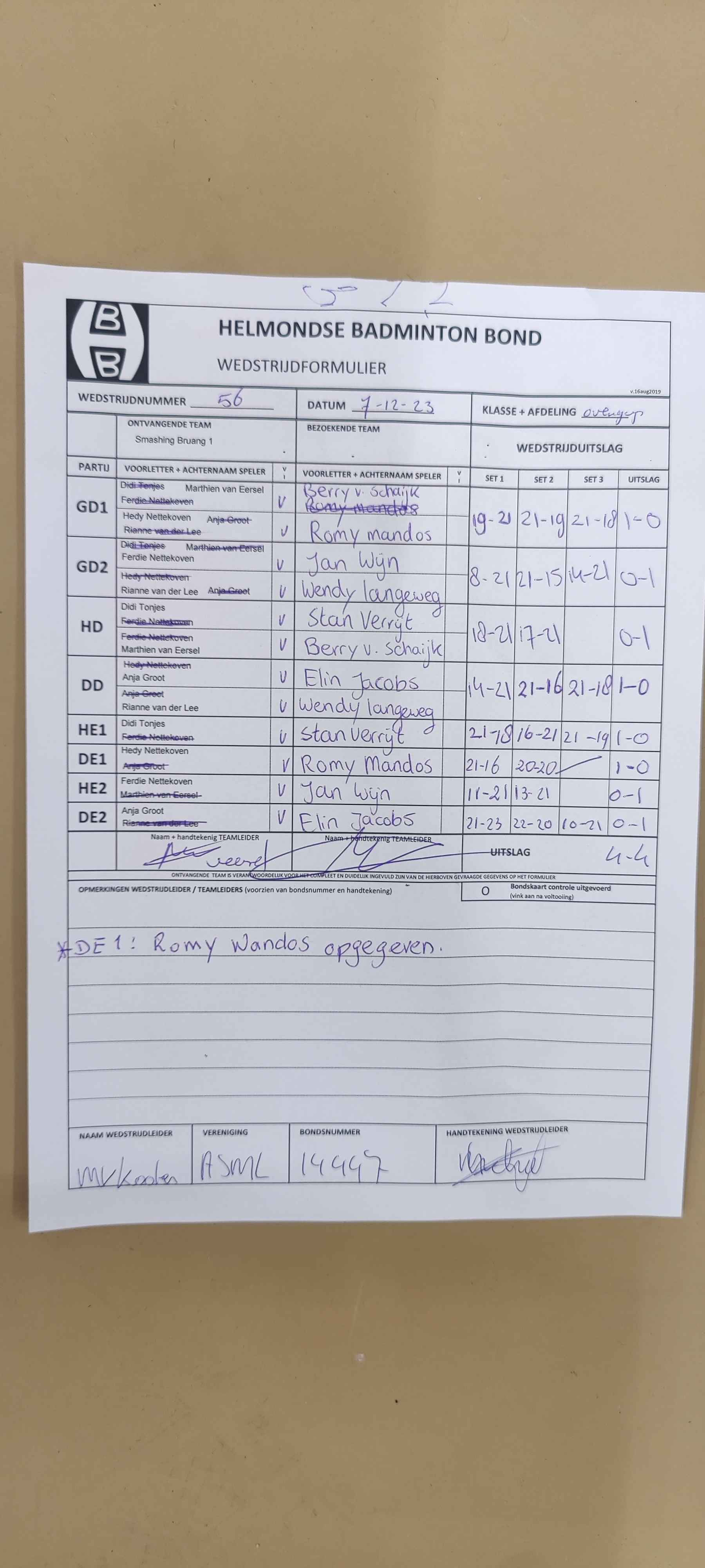 | 56 | do. 07-12-2023 | Smashing Bruang 1 | - | Mierlo 3 | 5 | 4 - 4 | |||