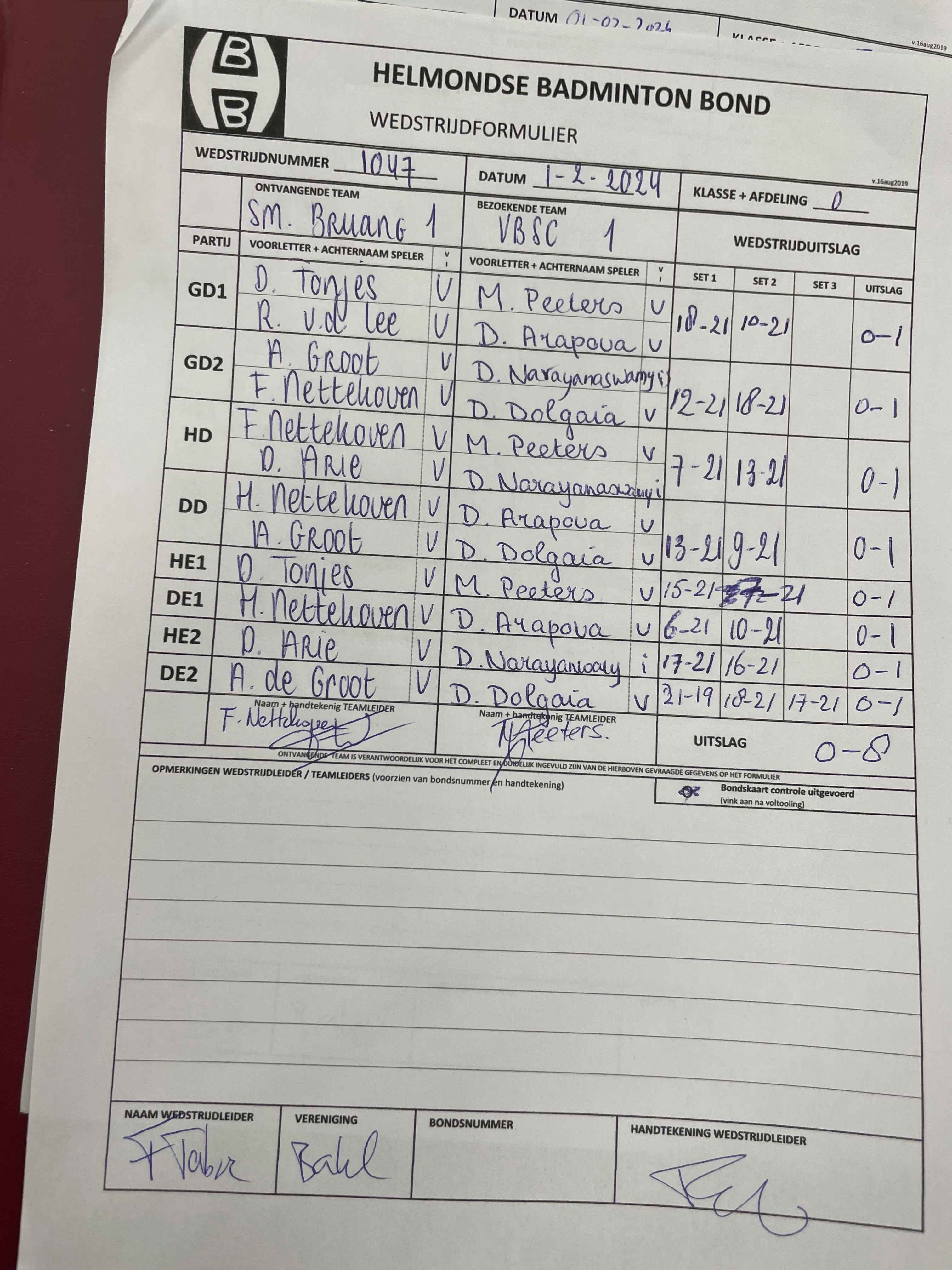| 1047 | do. 01-02-2024 | Smashing Bruang 1 | - | VBSC 1 | 12 | 0 - 8 | |||