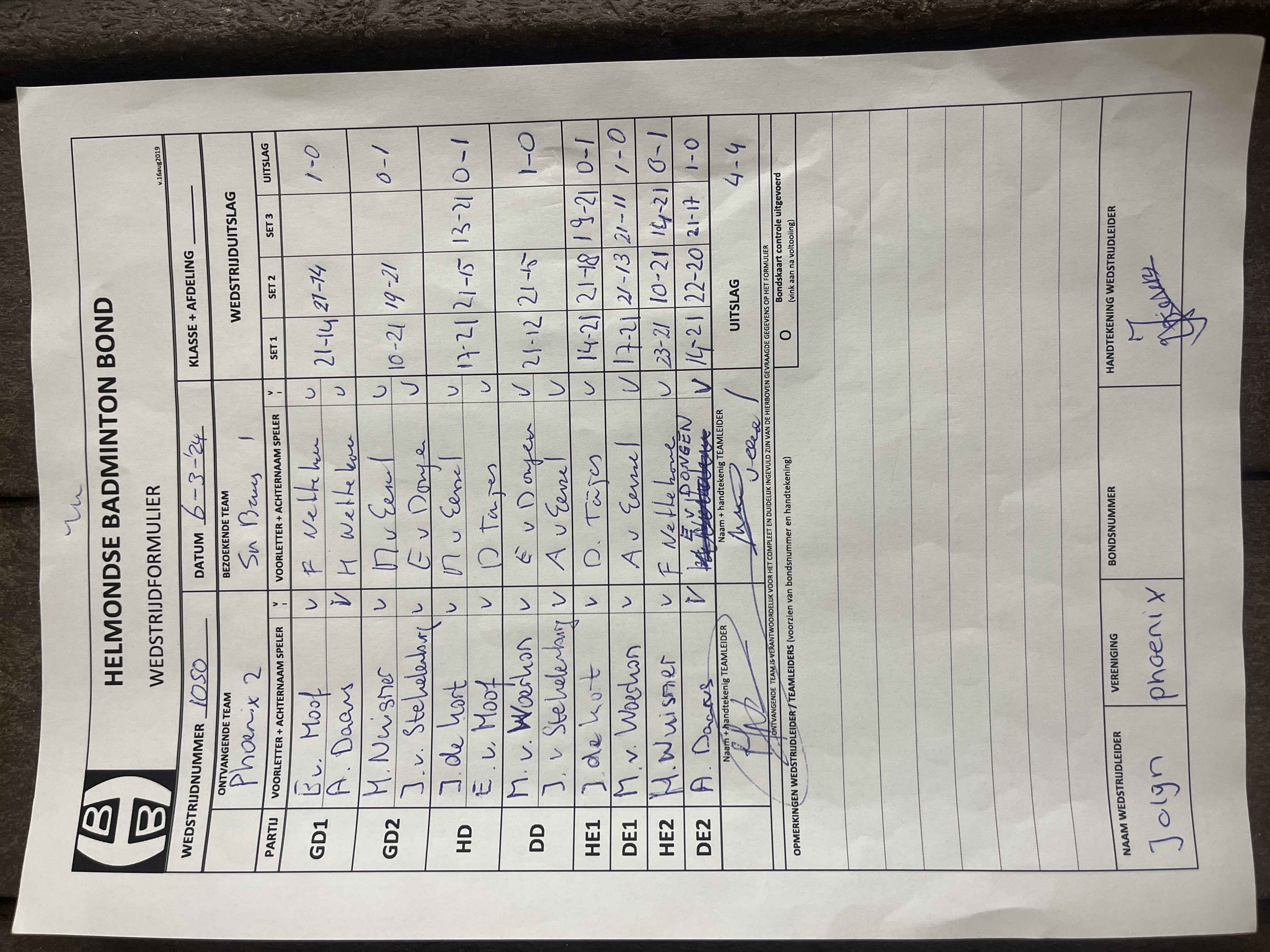 | 1050 | wo. 06-03-2024 | Phoenix 2 | - | Smashing Bruang 1 | 13 | 4 - 4 | |||