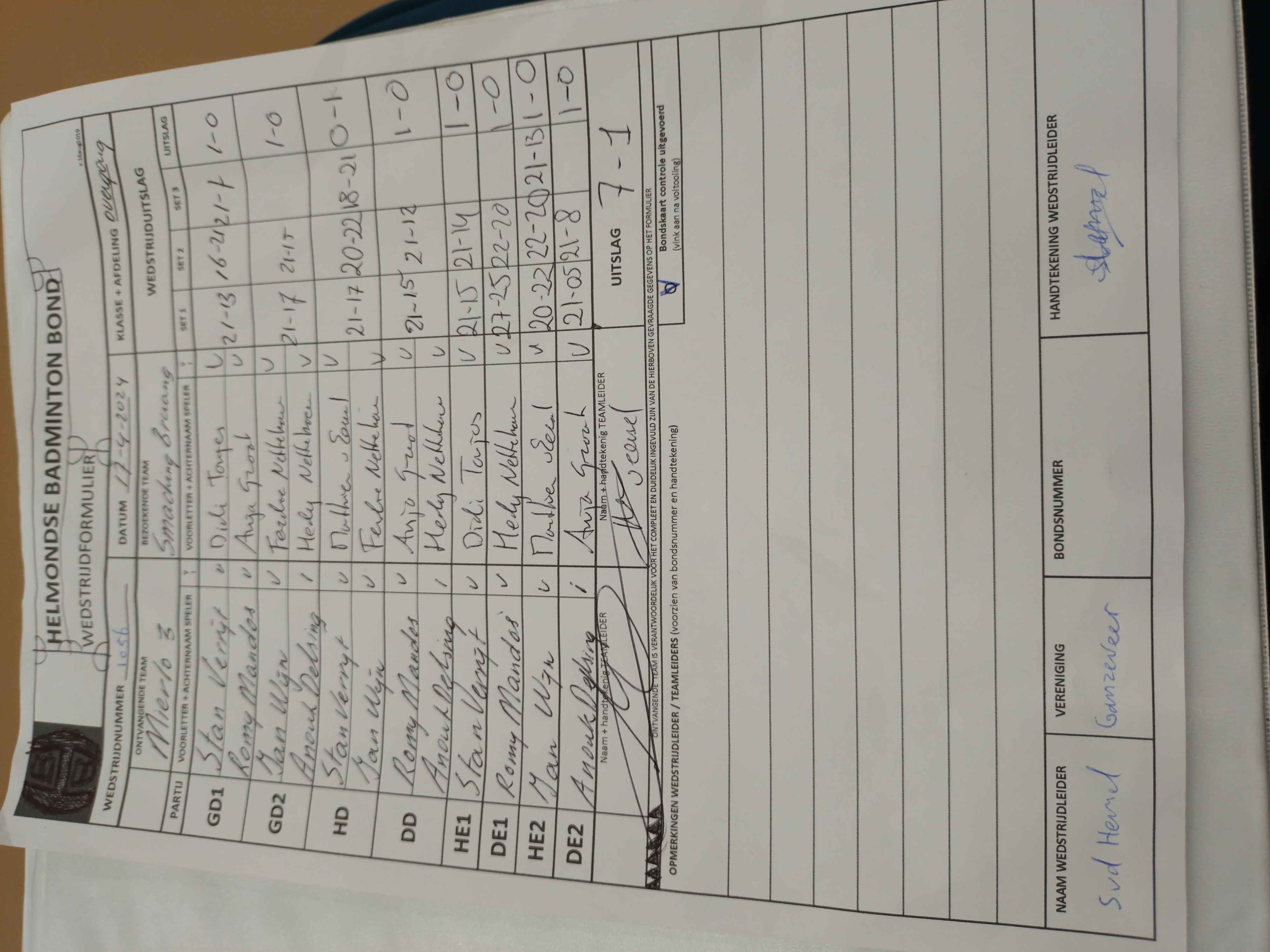 | 1056 | wo. 17-04-2024 | Mierlo 3 | - | Smashing Bruang 1 | 1 | 7 - 1 | |||