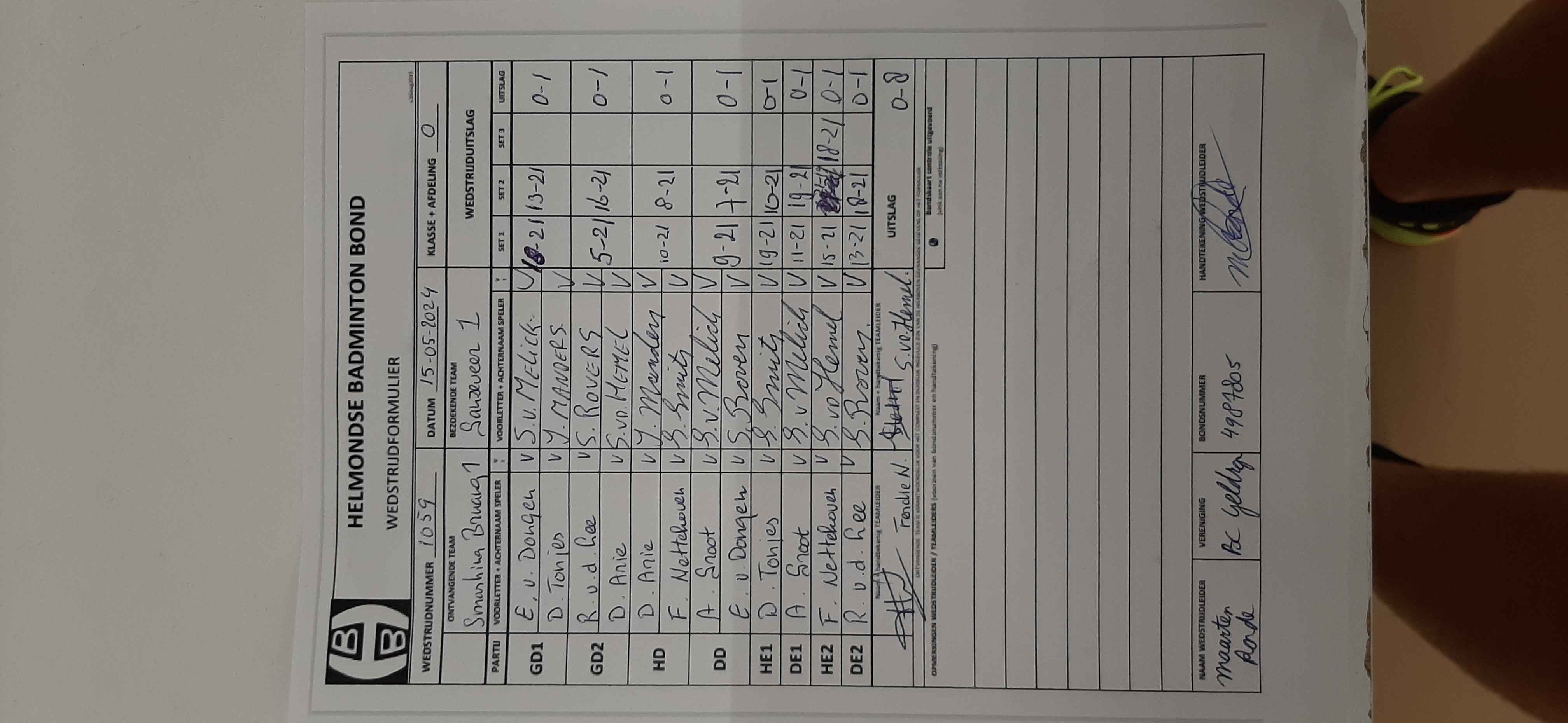 | 1059 | wo. 15-05-2024 | Smashing Bruang 1 | - | Ganzeveer 1 | 4 | 0 - 8 | |||