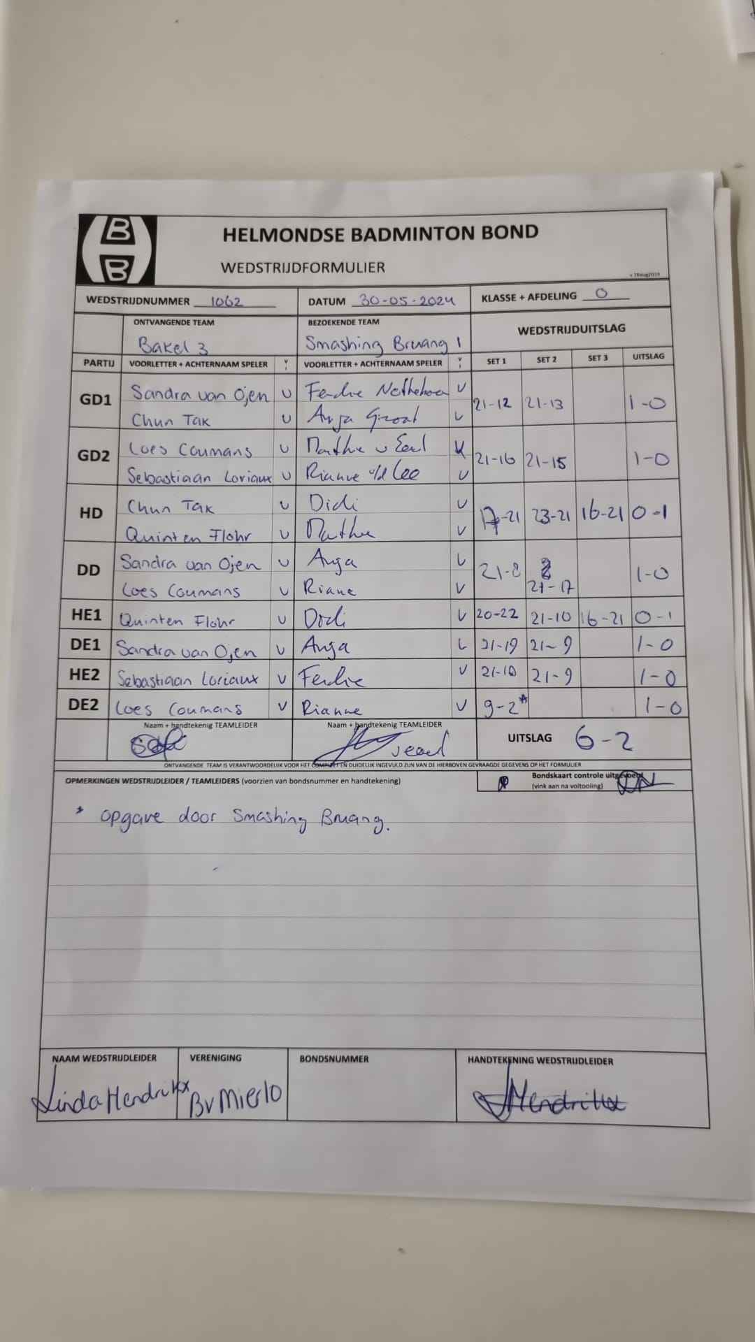 | 1062 | do. 30-05-2024 | Bakel 3 | - | Smashing Bruang 1 | 1 | 6 - 2 |