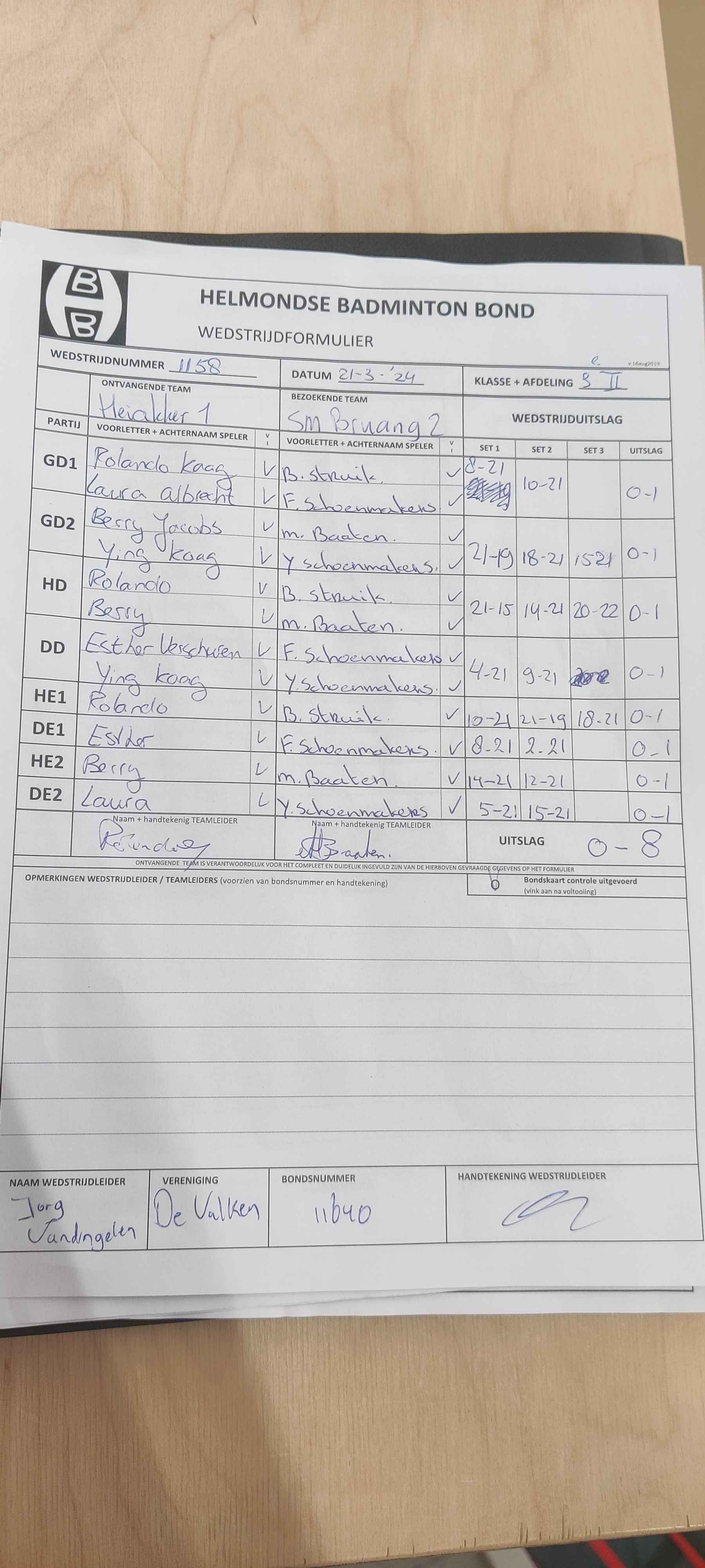 | 1148 | do. 08-02-2024 | Gemert 1 | - | Smashing Bruang 2 | 13 | 8 - 0 | |||