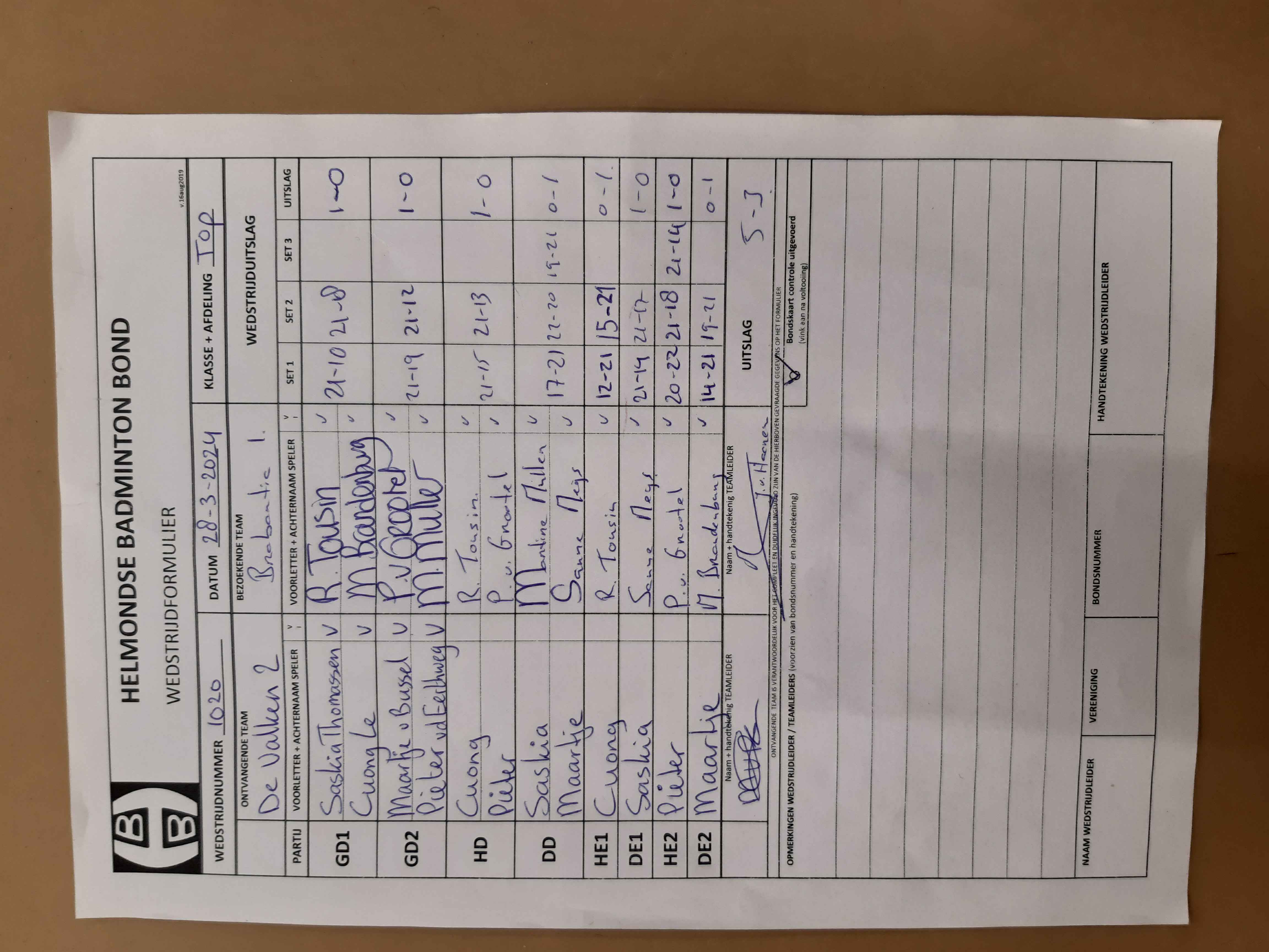 | 1020 | do. 28-03-2024 | De Valken 2 | - | Brabantia 1 | 15 | 5 - 3 | |||