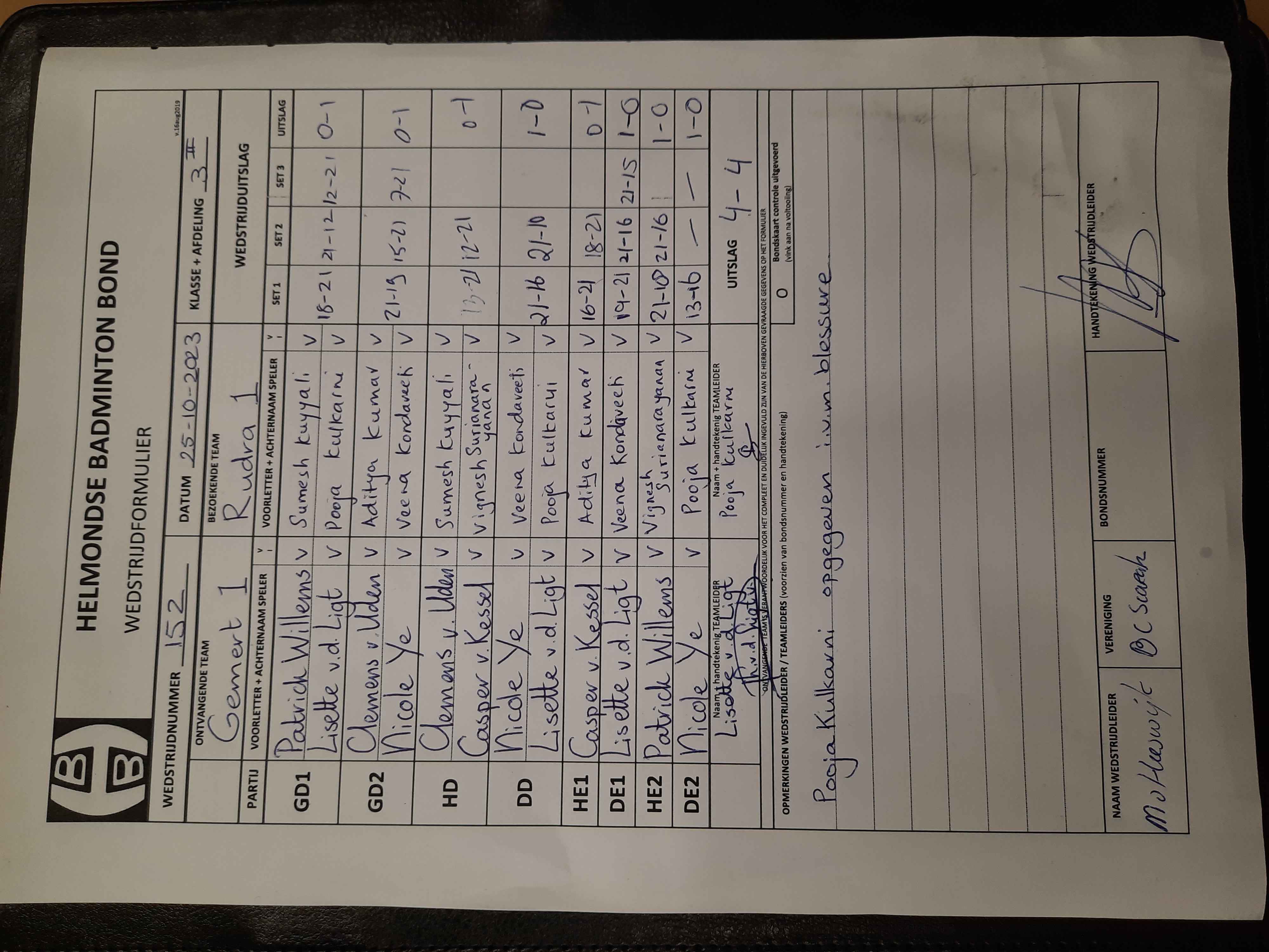 | 152 | wo. 25-10-2023 | Gemert 1 | - | Rudra 1 | 3 | 4 - 4 | |||