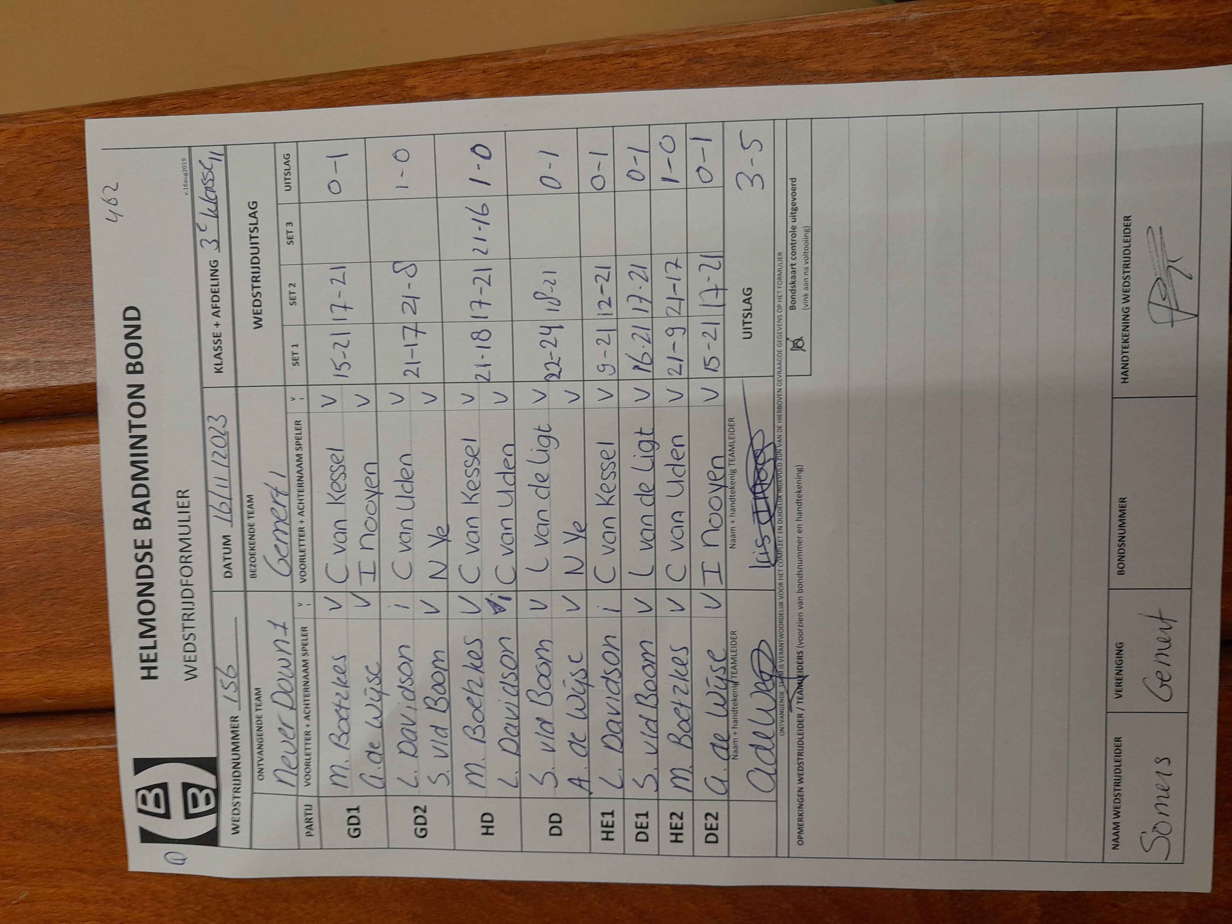 | 156 | do. 16-11-2023 | Never Down 1 | - | Gemert 1 | 3 | 3 - 5 | |||