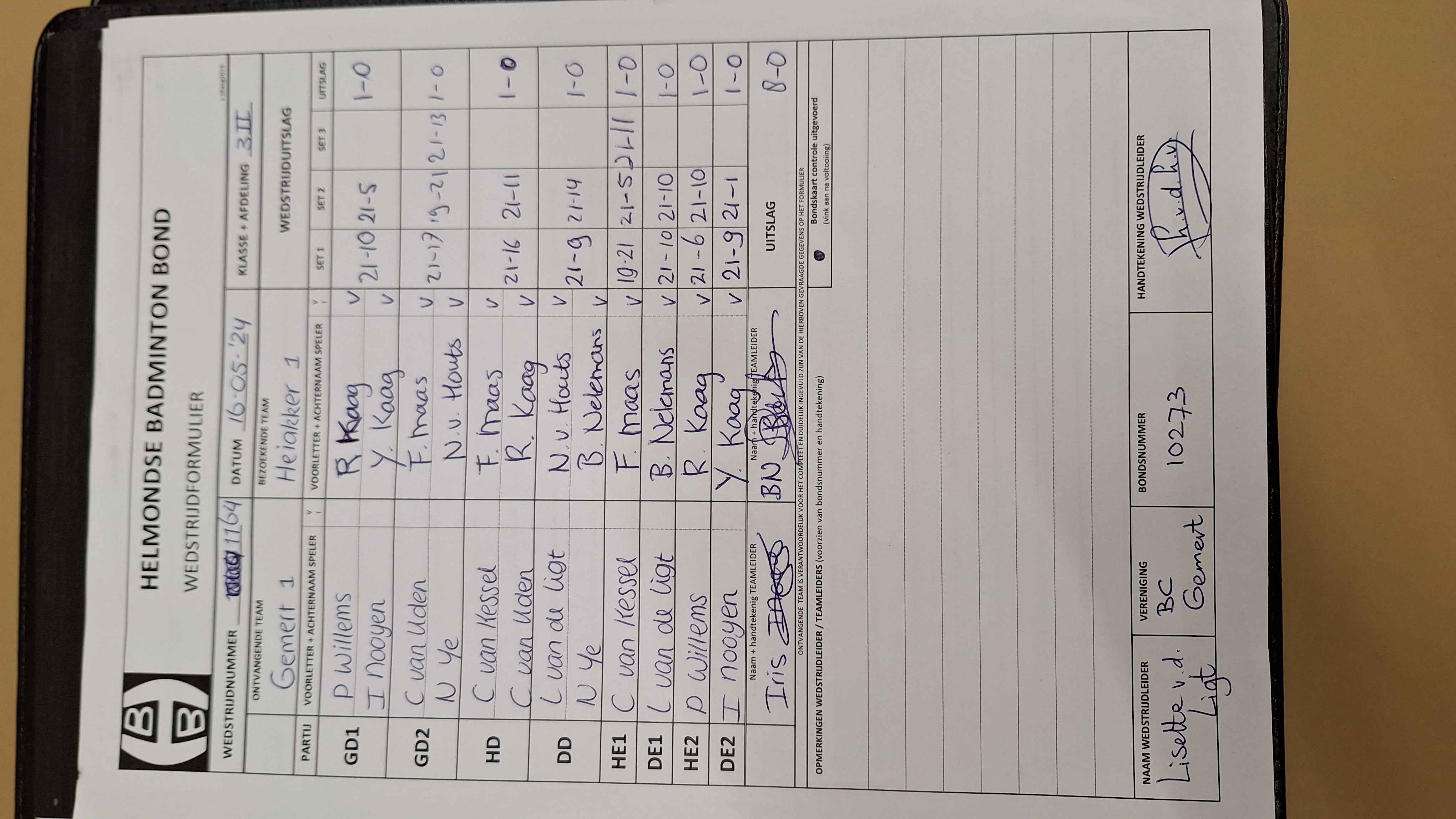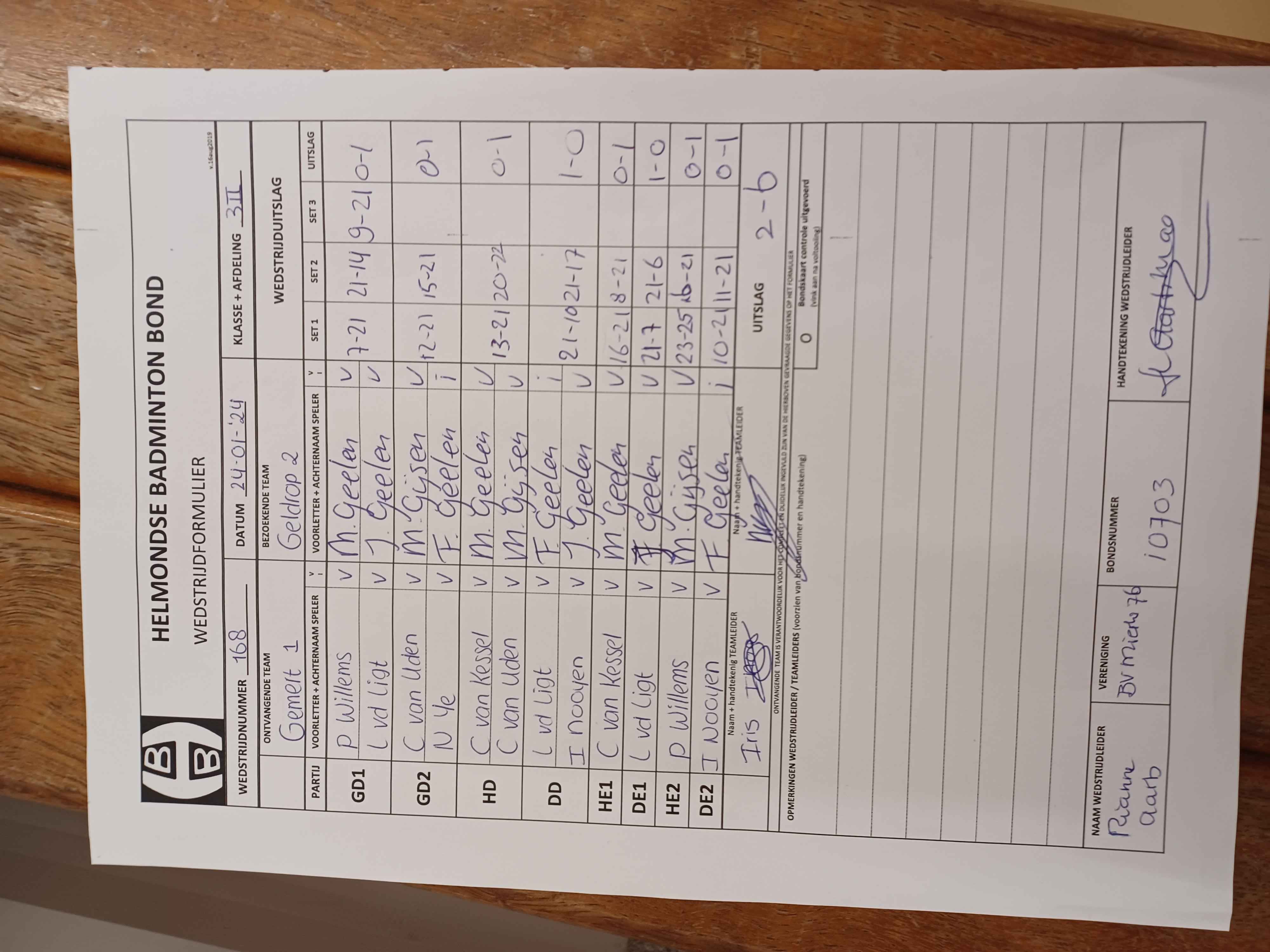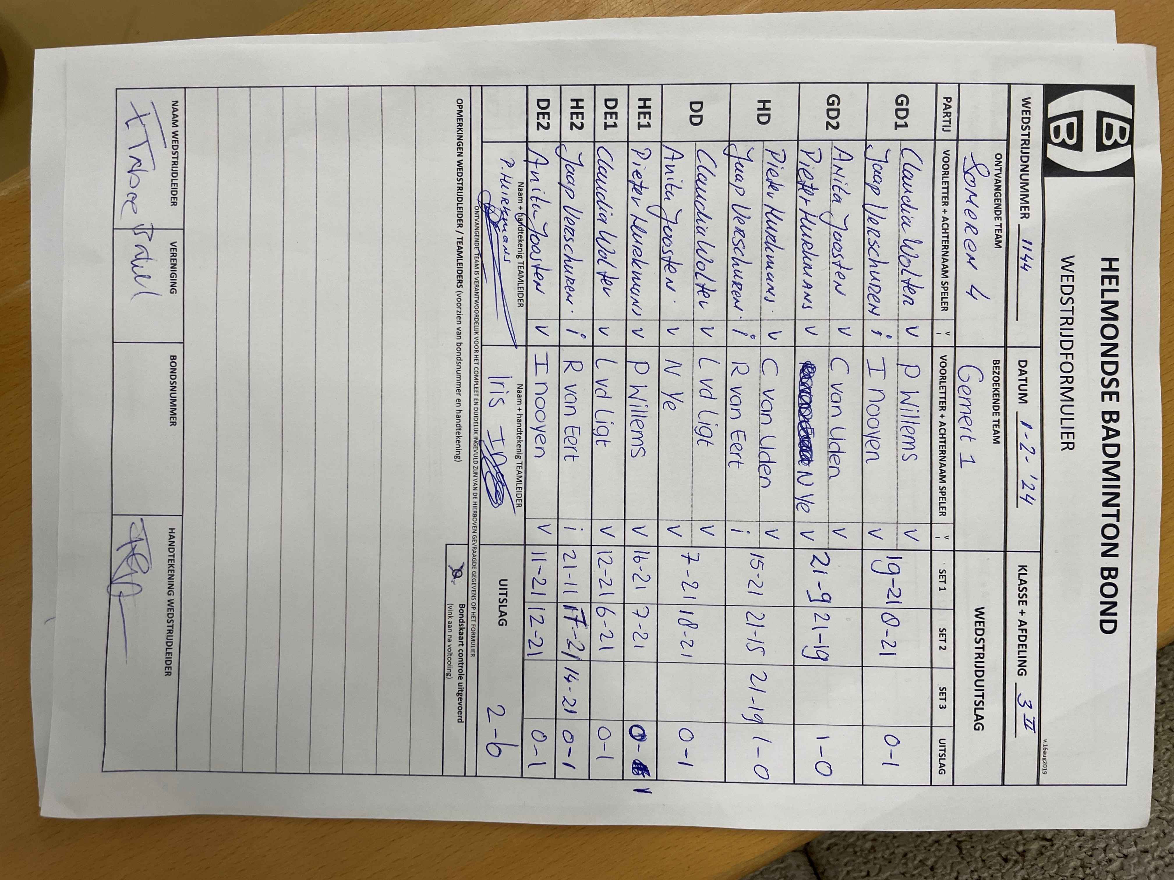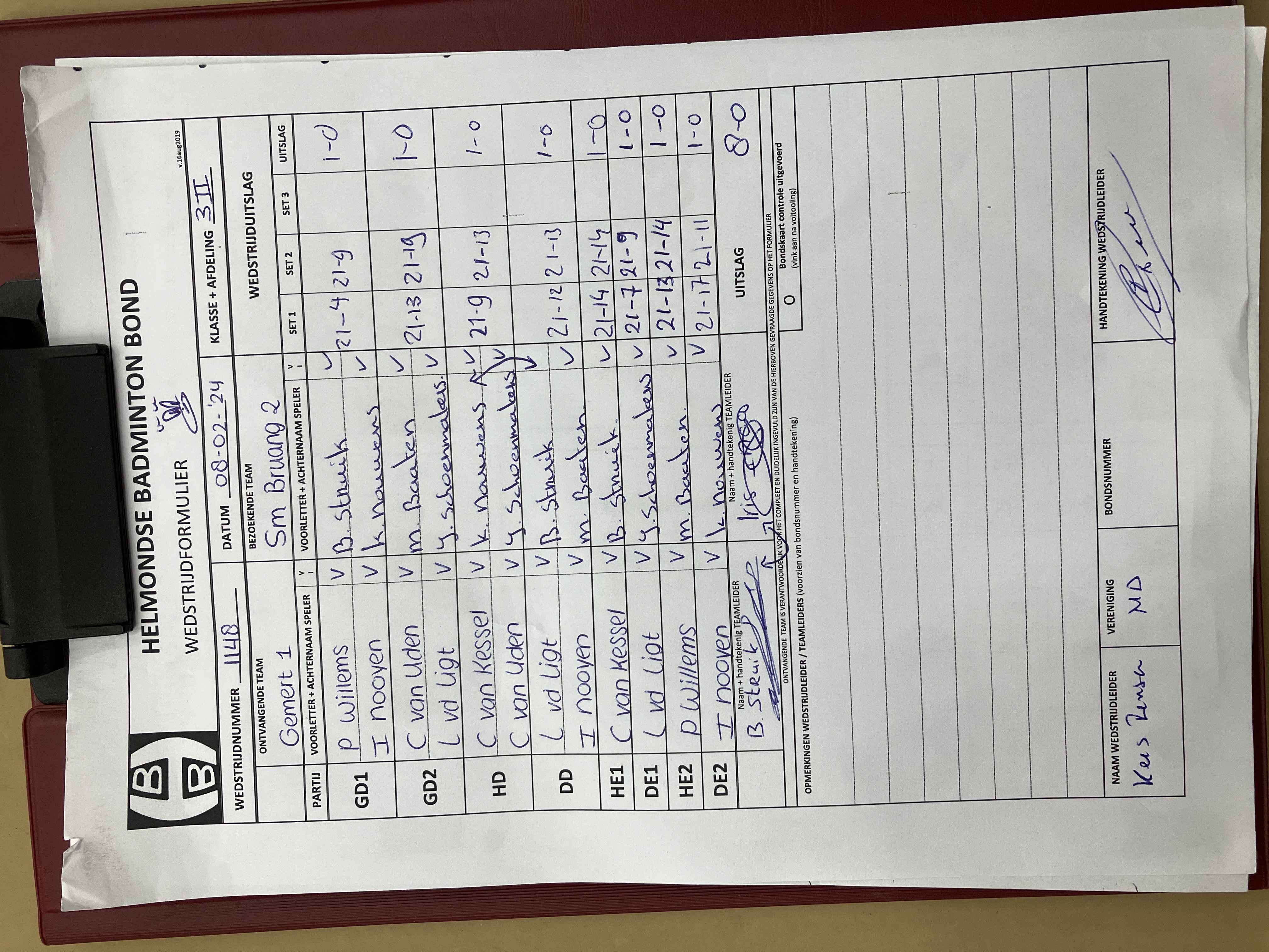 | 1148 | do. 08-02-2024 | Gemert 1 | - | Smashing Bruang 2 | 13 | 8 - 0 | |||