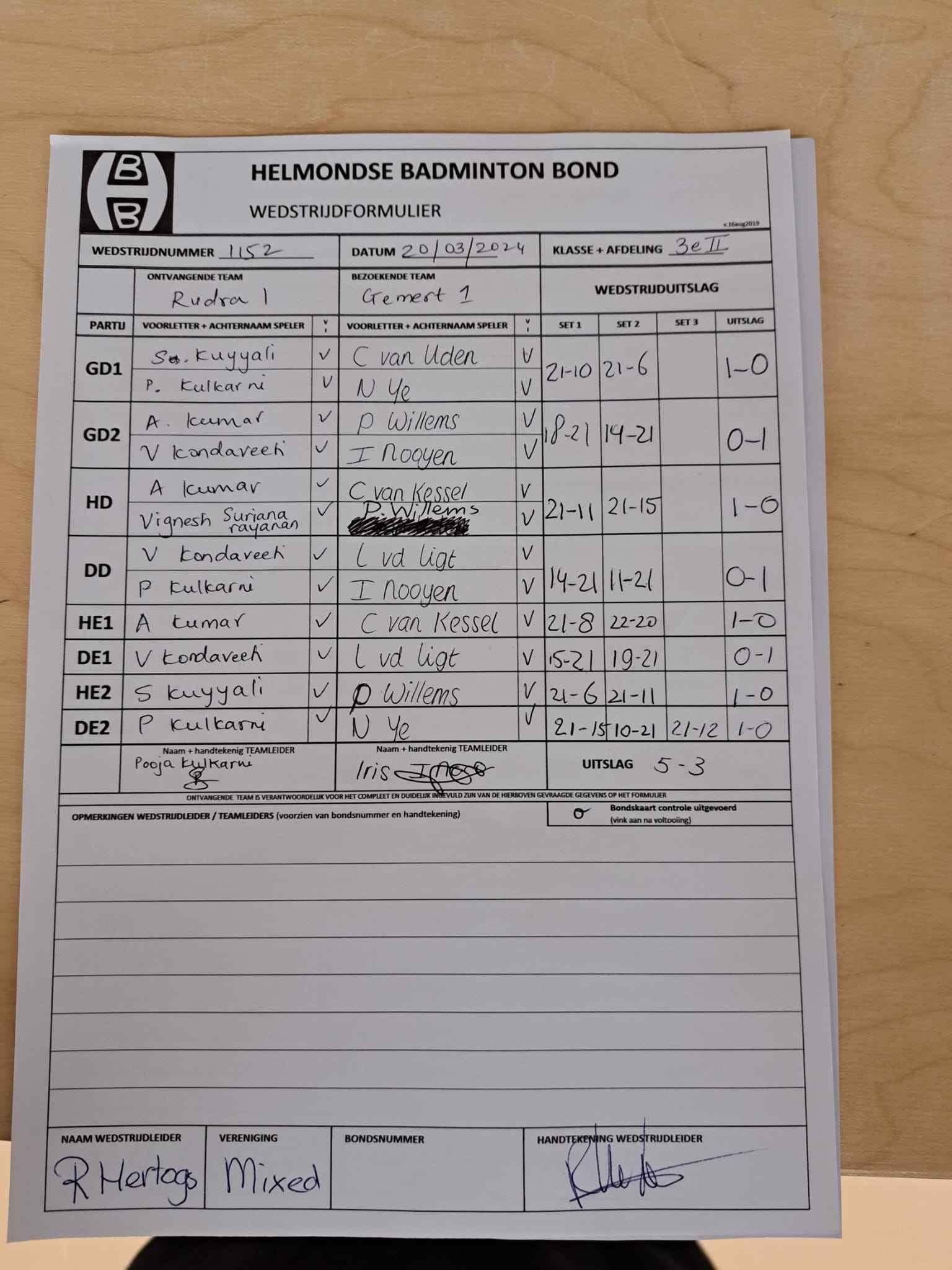 | 1152 | wo. 20-03-2024 | Rudra 1 | - | Gemert 1 | 1 | 5 - 3 | |||