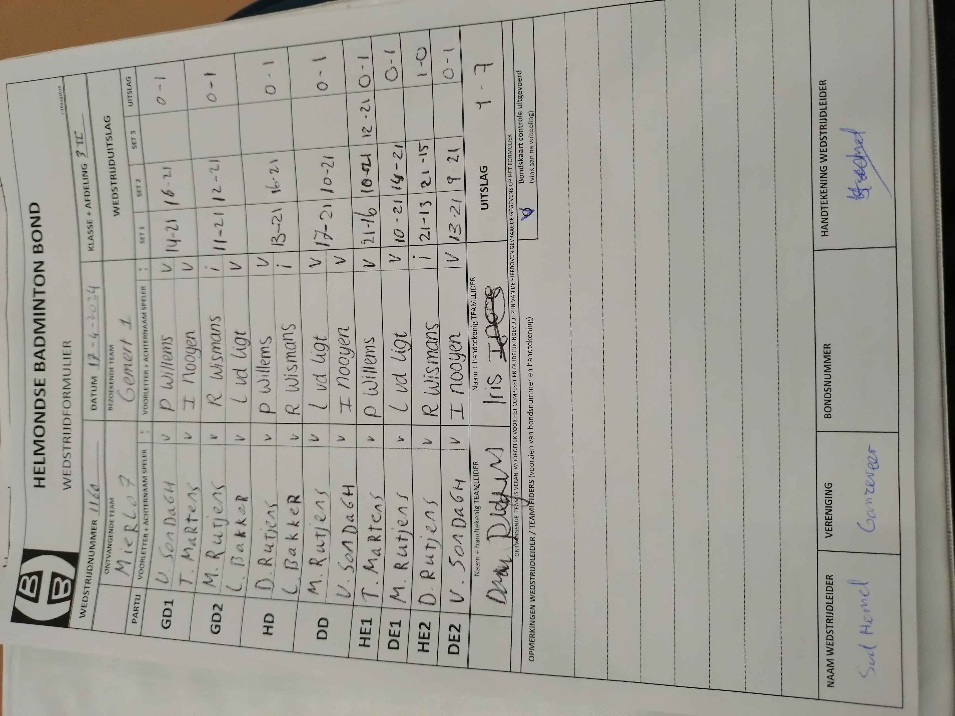 | 1160 | wo. 17-04-2024 | Mierlo 7 | - | Gemert 1 | 3 | 1 - 7 | |||