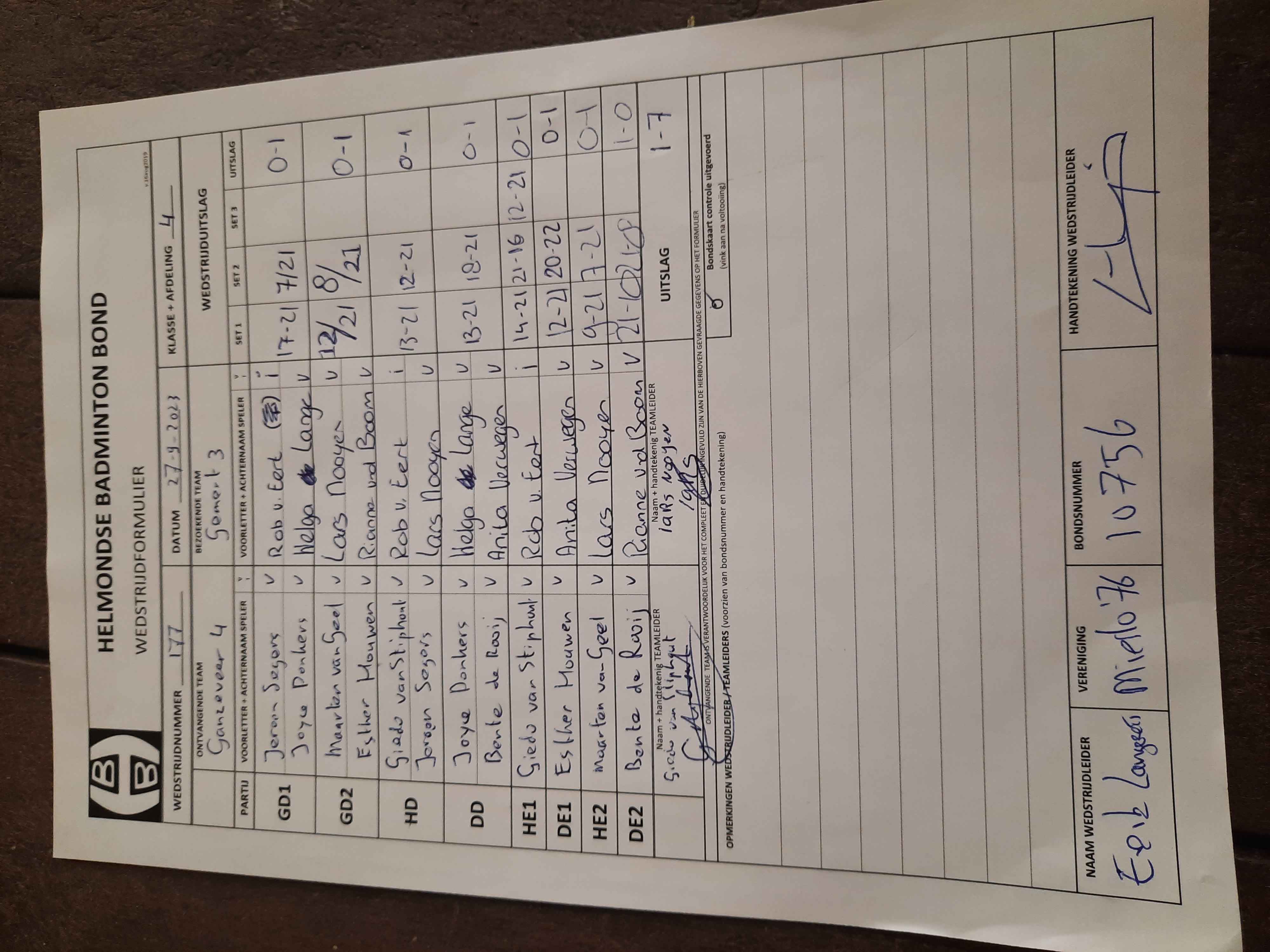 | 177 | wo. 27-09-2023 | Ganzeveer 4 | - | Gemert 3 | 14 | 1 - 7 | |||