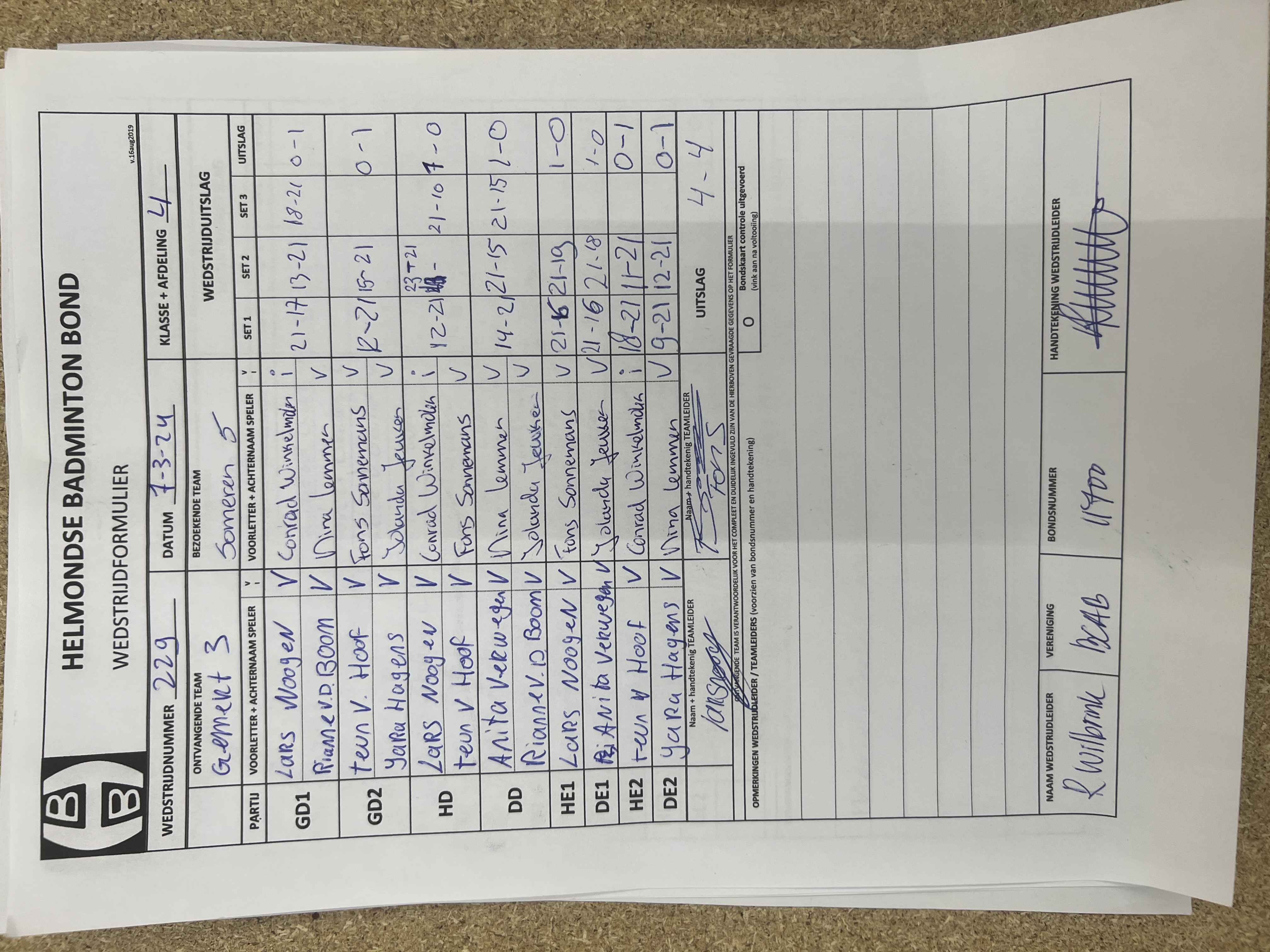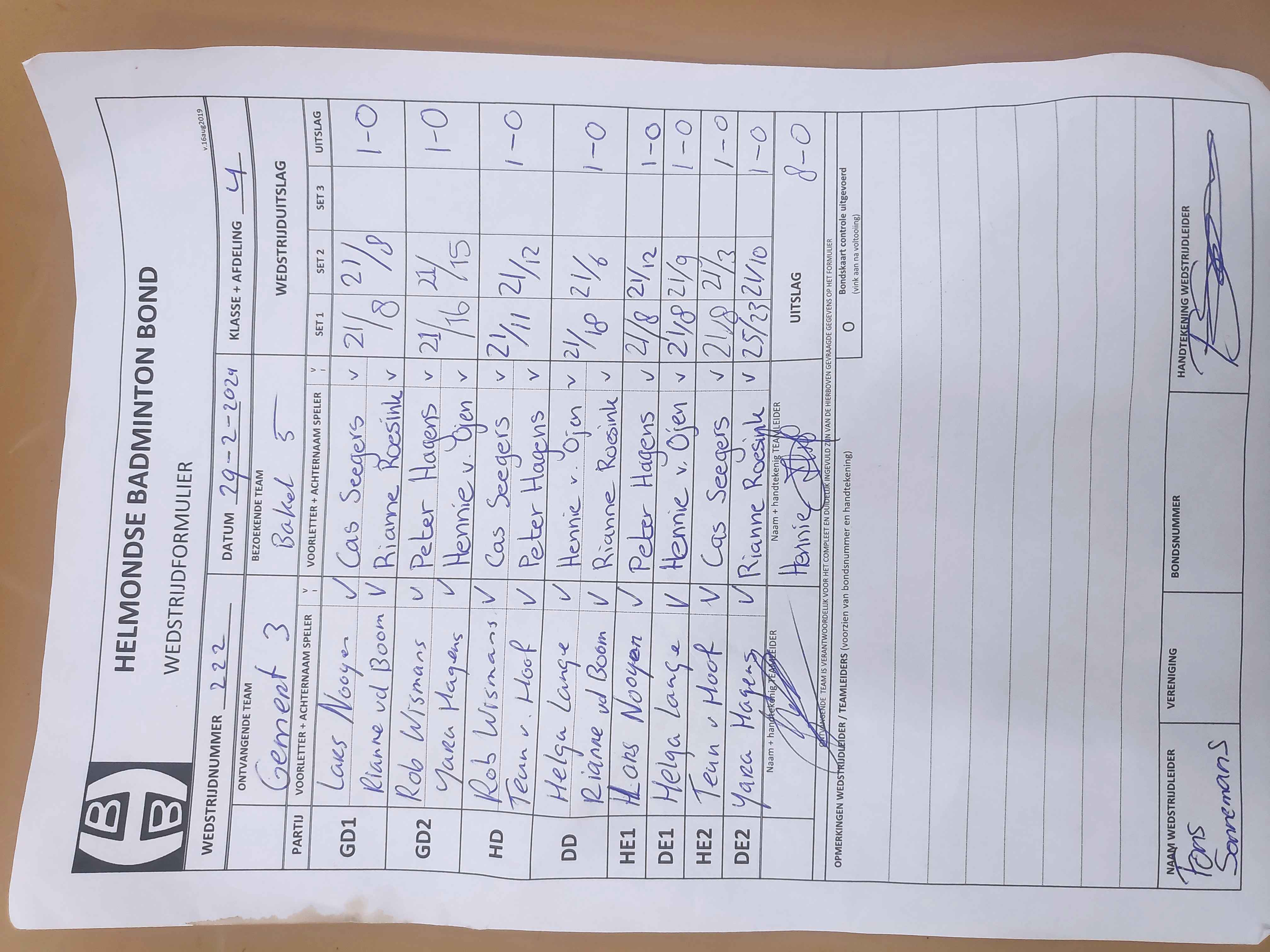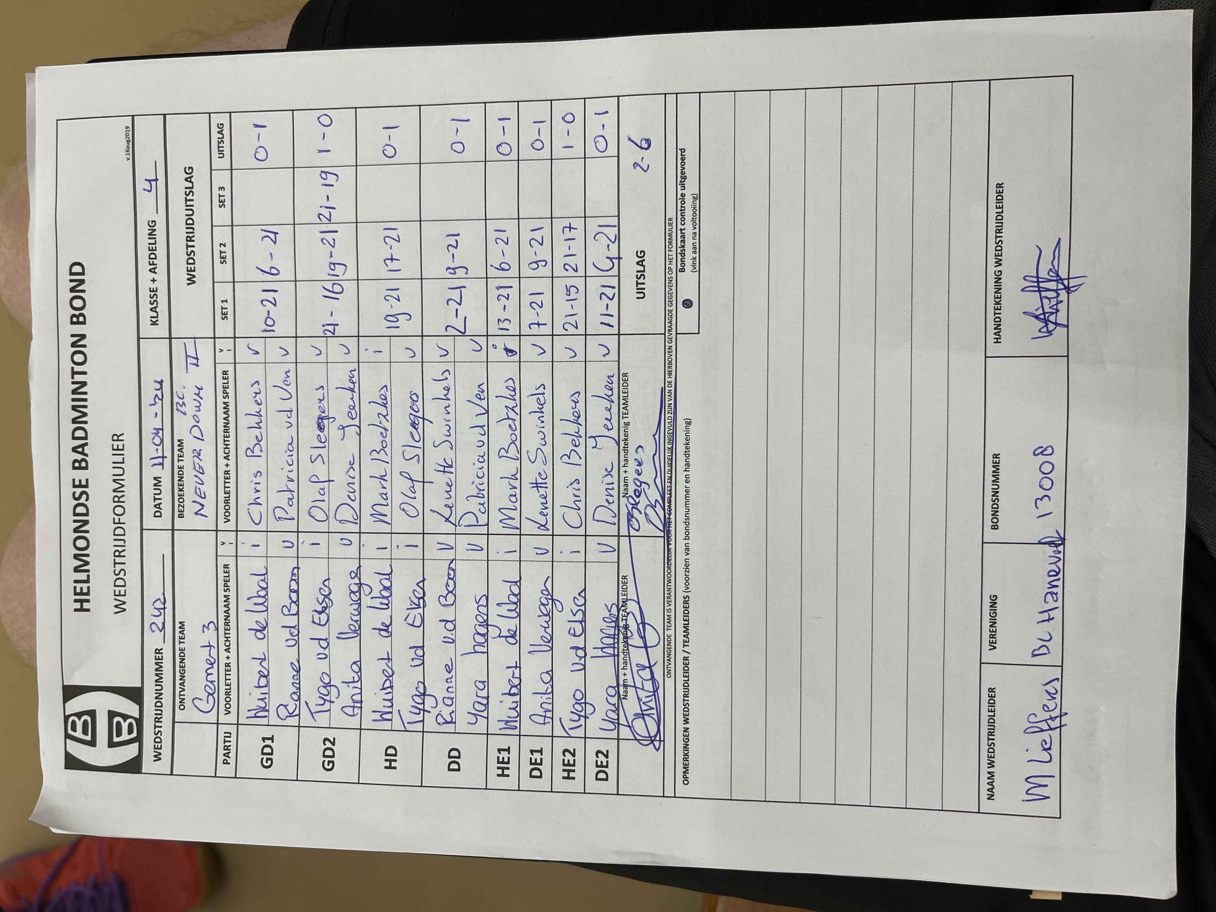 | 187 | wo. 08-11-2023 | Mixed 5 | - | Gemert 3 | 11 | 4 - 4 | |||